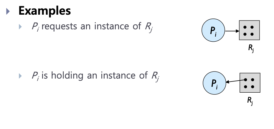 - R = {R1, R2, ..., Rm}, 시스템의 모든 자원 유형 집합.