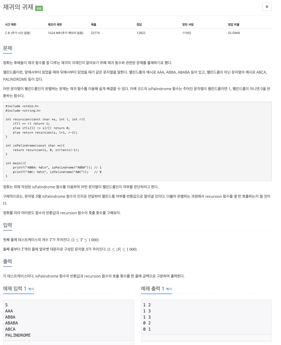 int recursion(string &s, int l, int r){ // 문자열 참조