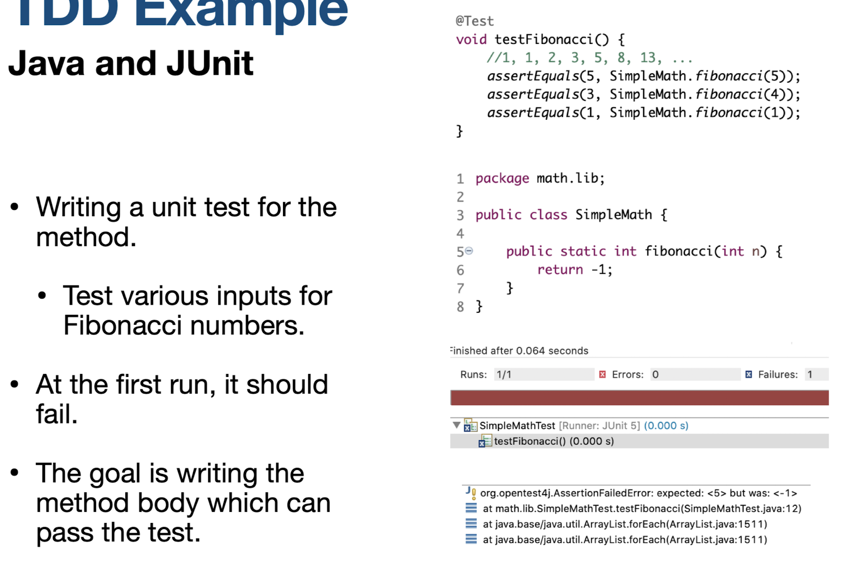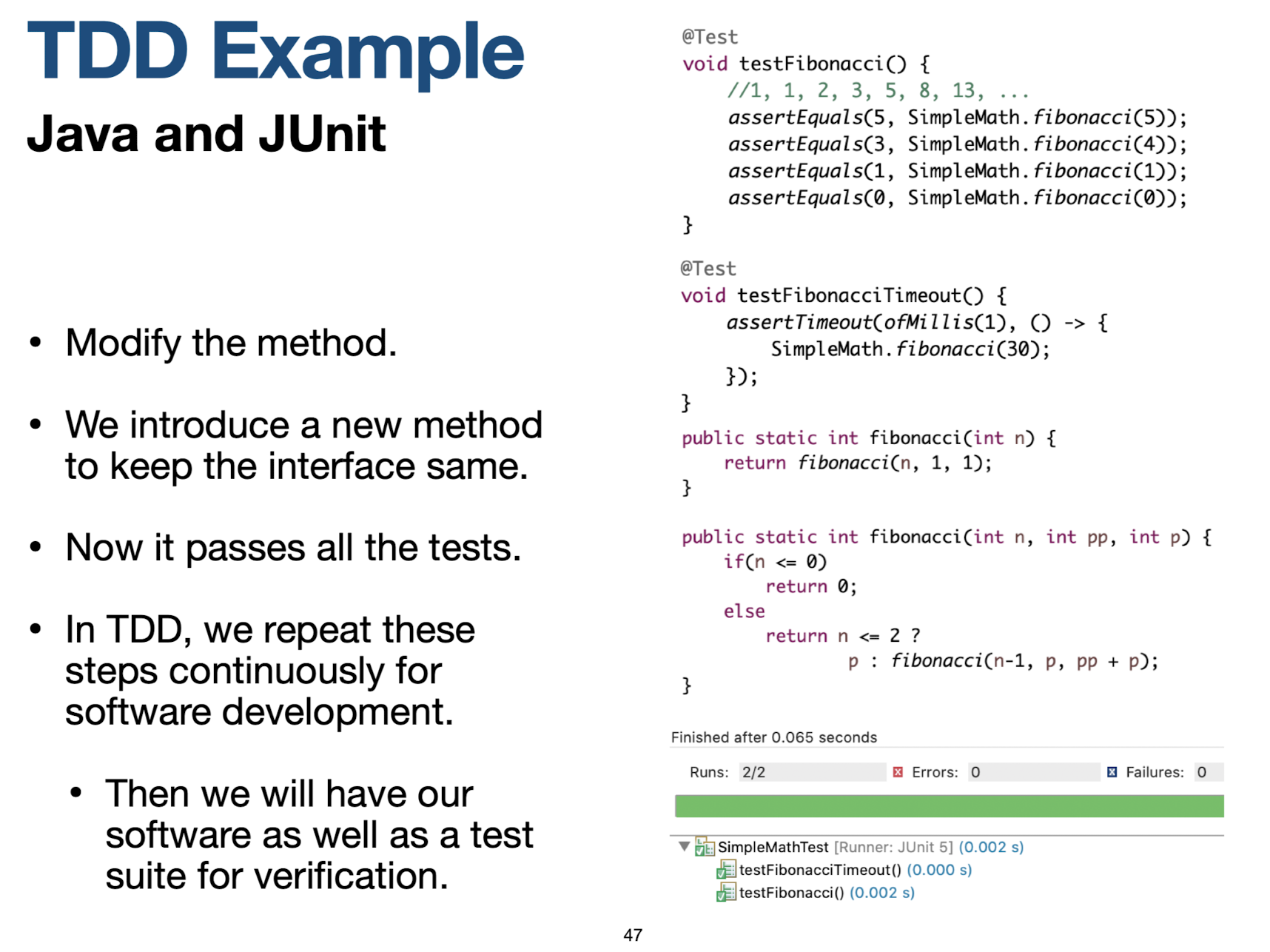 TDD는 테스트와 코드 개발을 교차하여 진행하는 접근 방식으로, 개발된 프로그램이 통과해야 하는 테스트 케이스 작성부터 시작합니다.