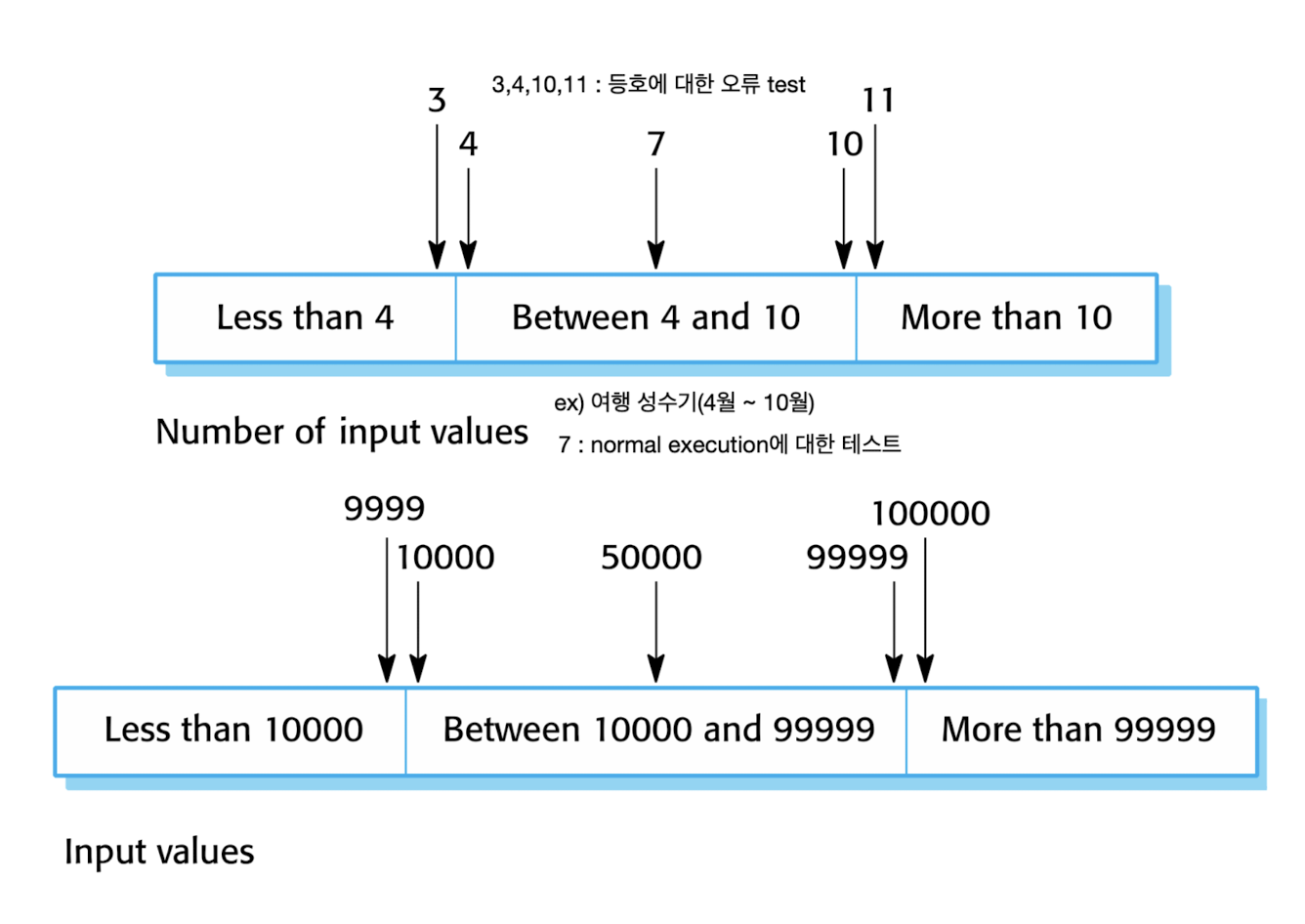 Partitioning testing(분할 테스트): 입력 그룹을 식별하고, 같은 방식으로 처리되어야 하는 공통 특성을 가집니다.