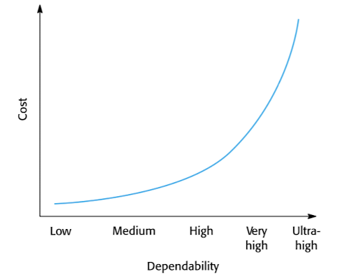- 더 높은 수준의 신뢰성을 달성하기 위해 필요한 더 비싼 개발 기술 및 하드웨어의 사용(The use of more expensive development techniques and hardware).