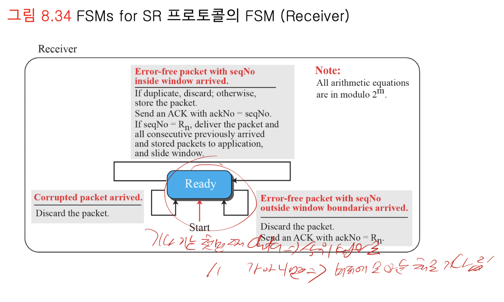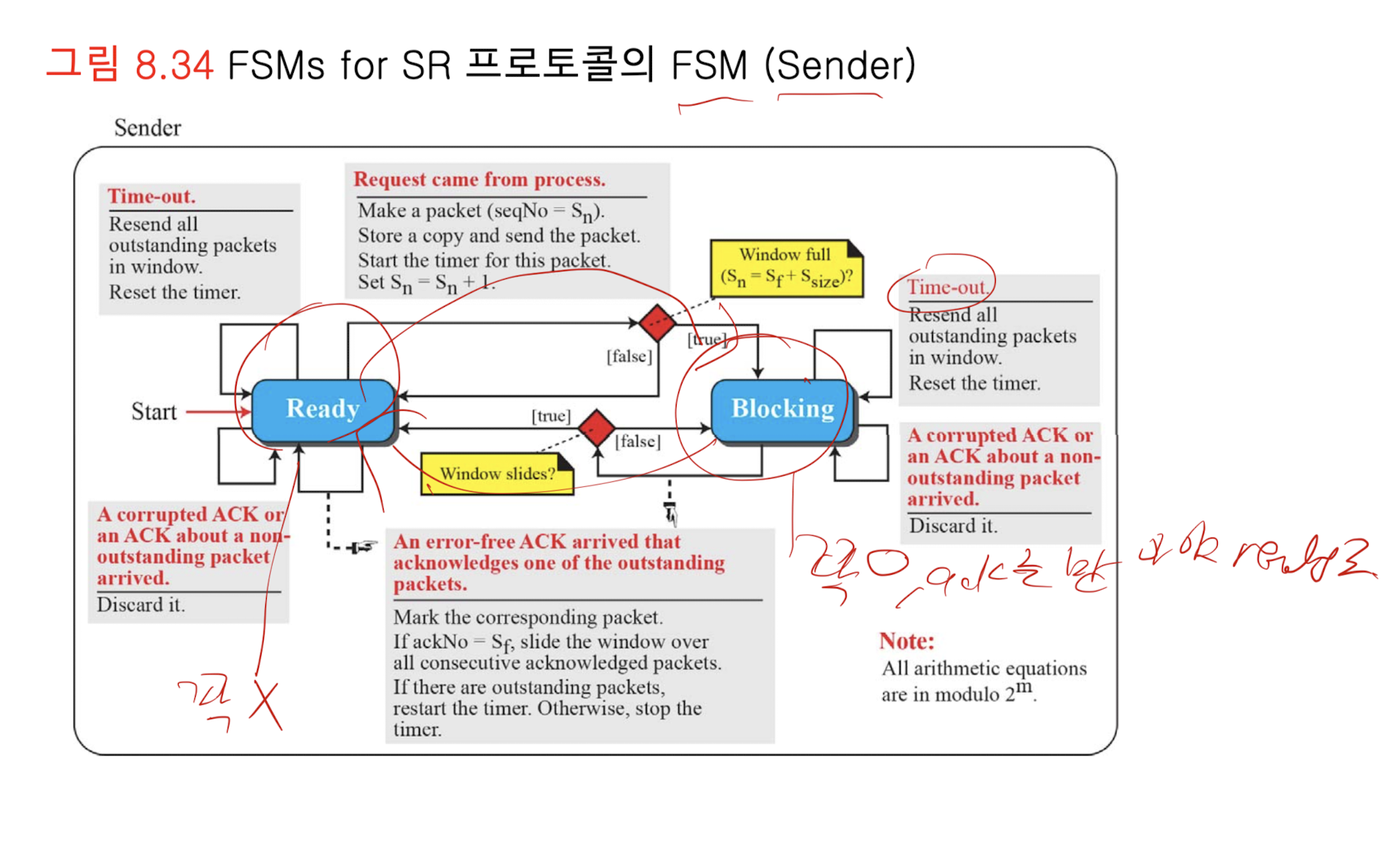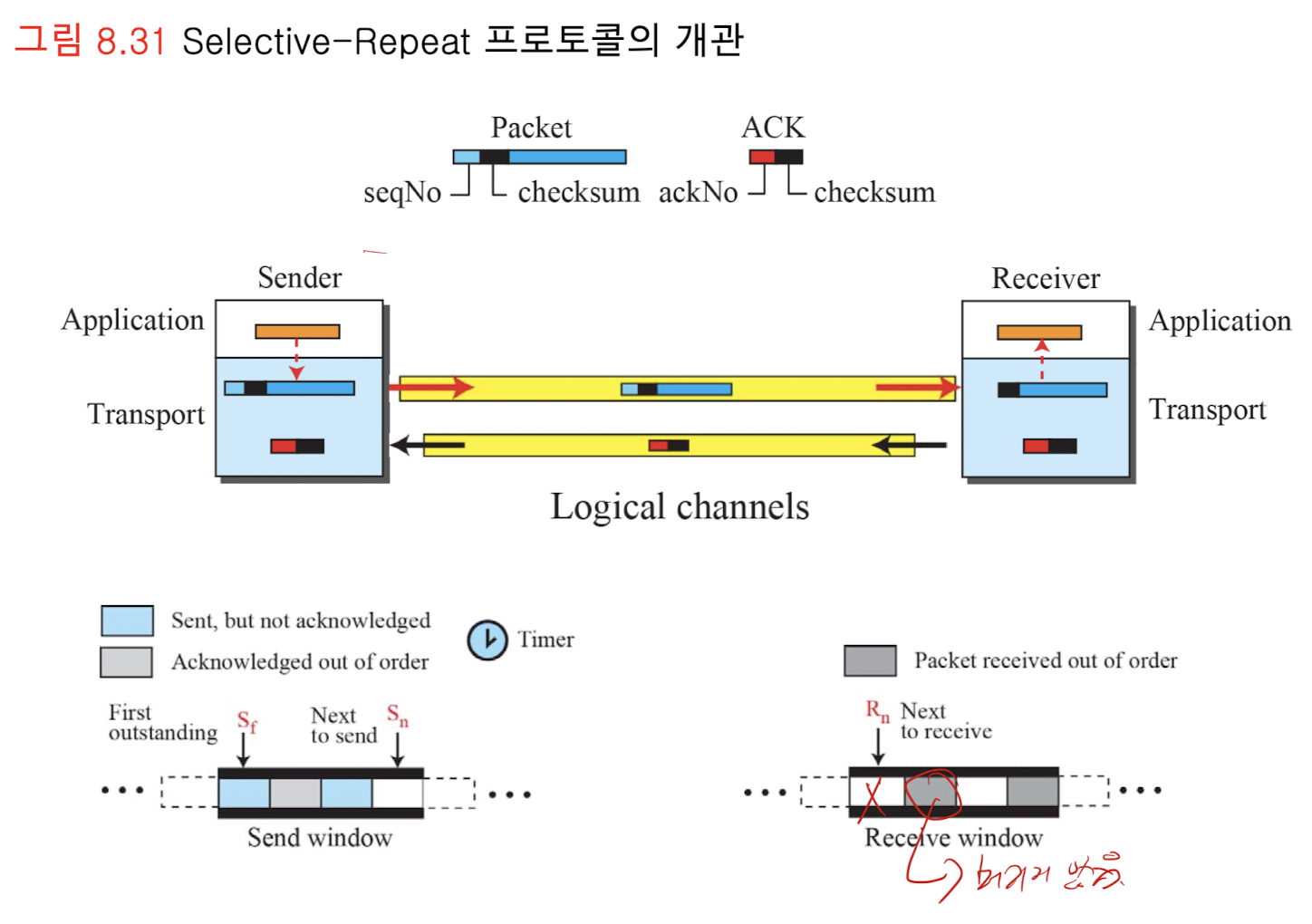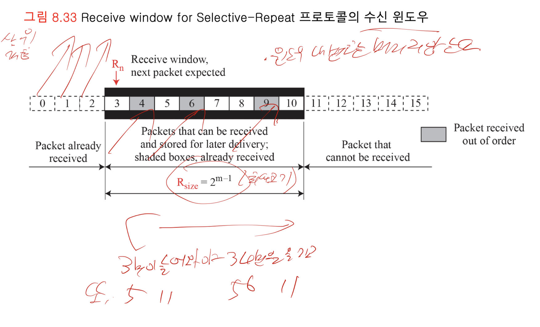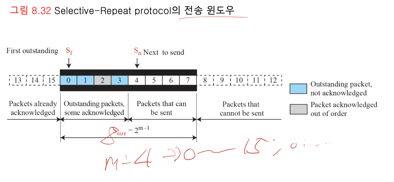 - window size는 Go-back-n의 경우 2^m-1이지만, selective는 2^(m-1)이다