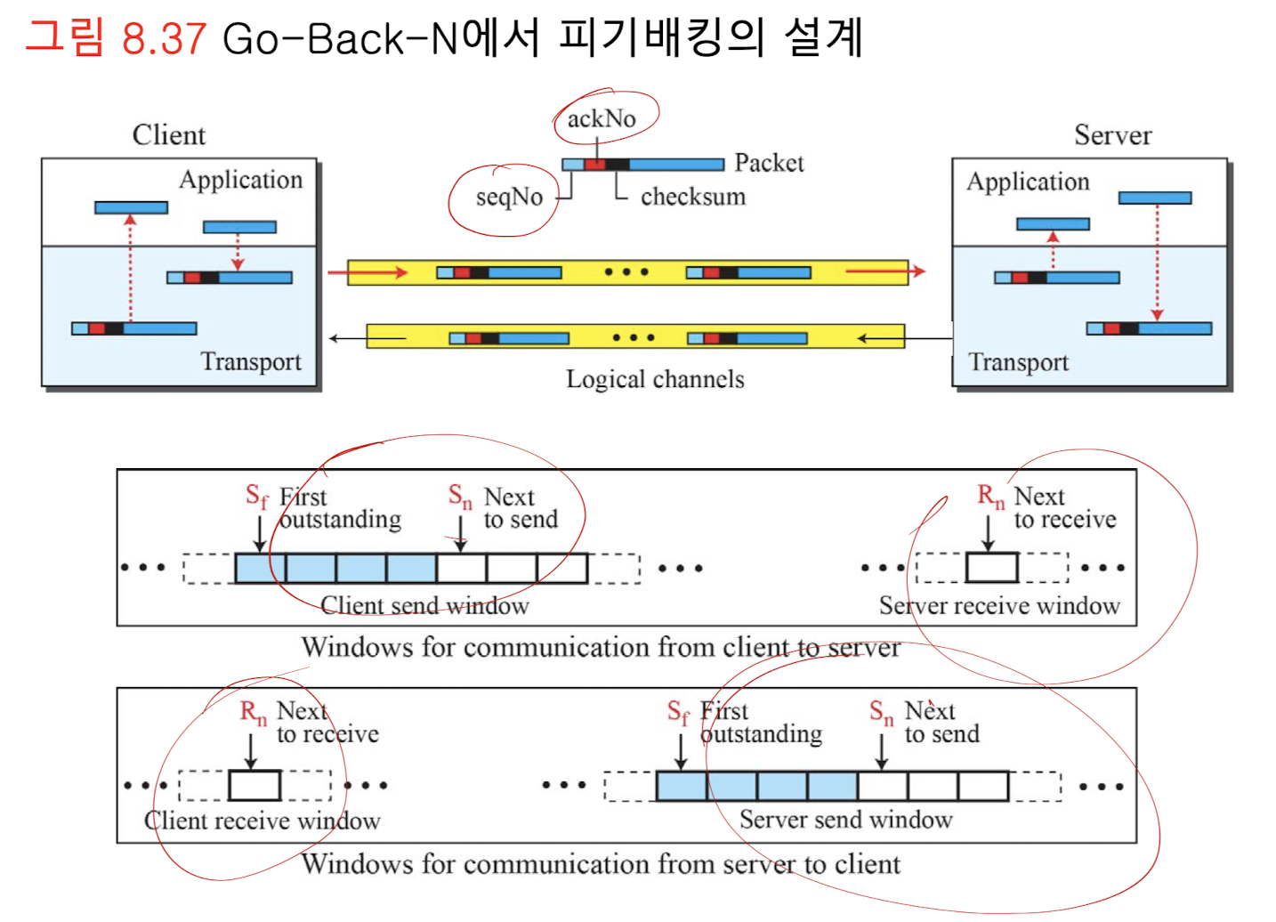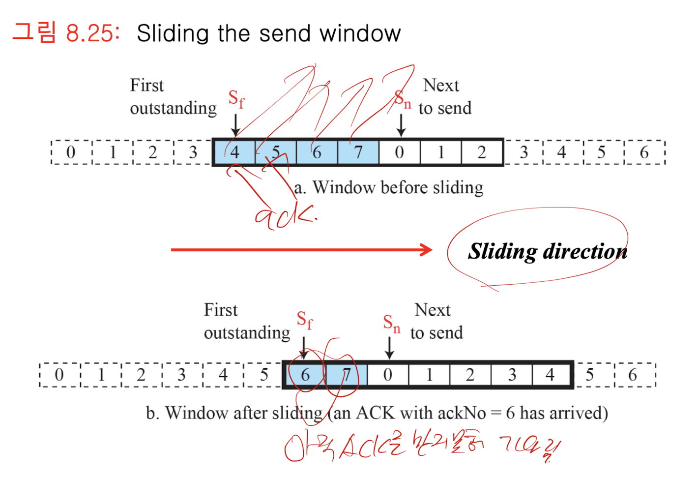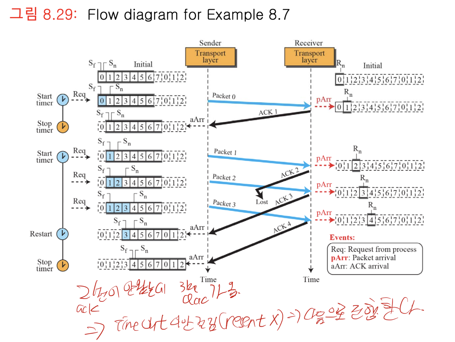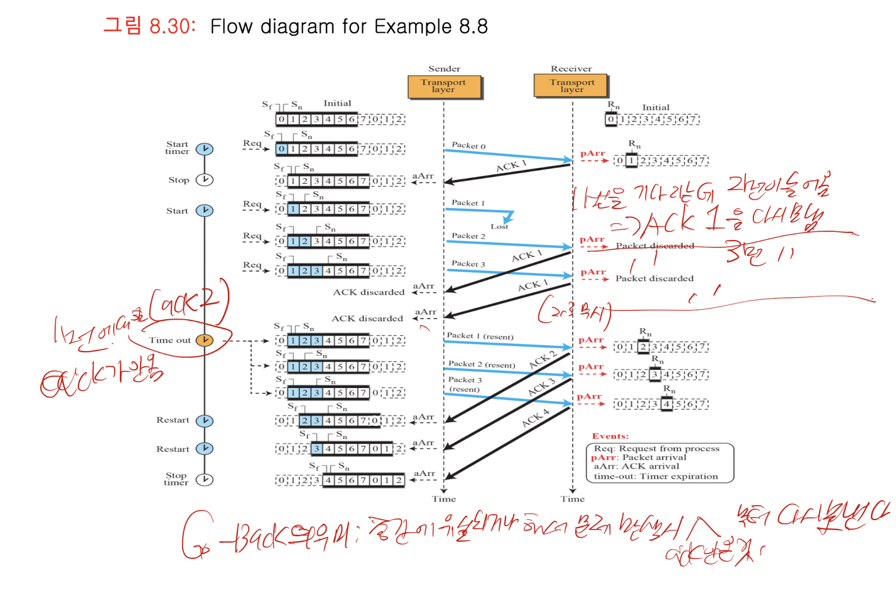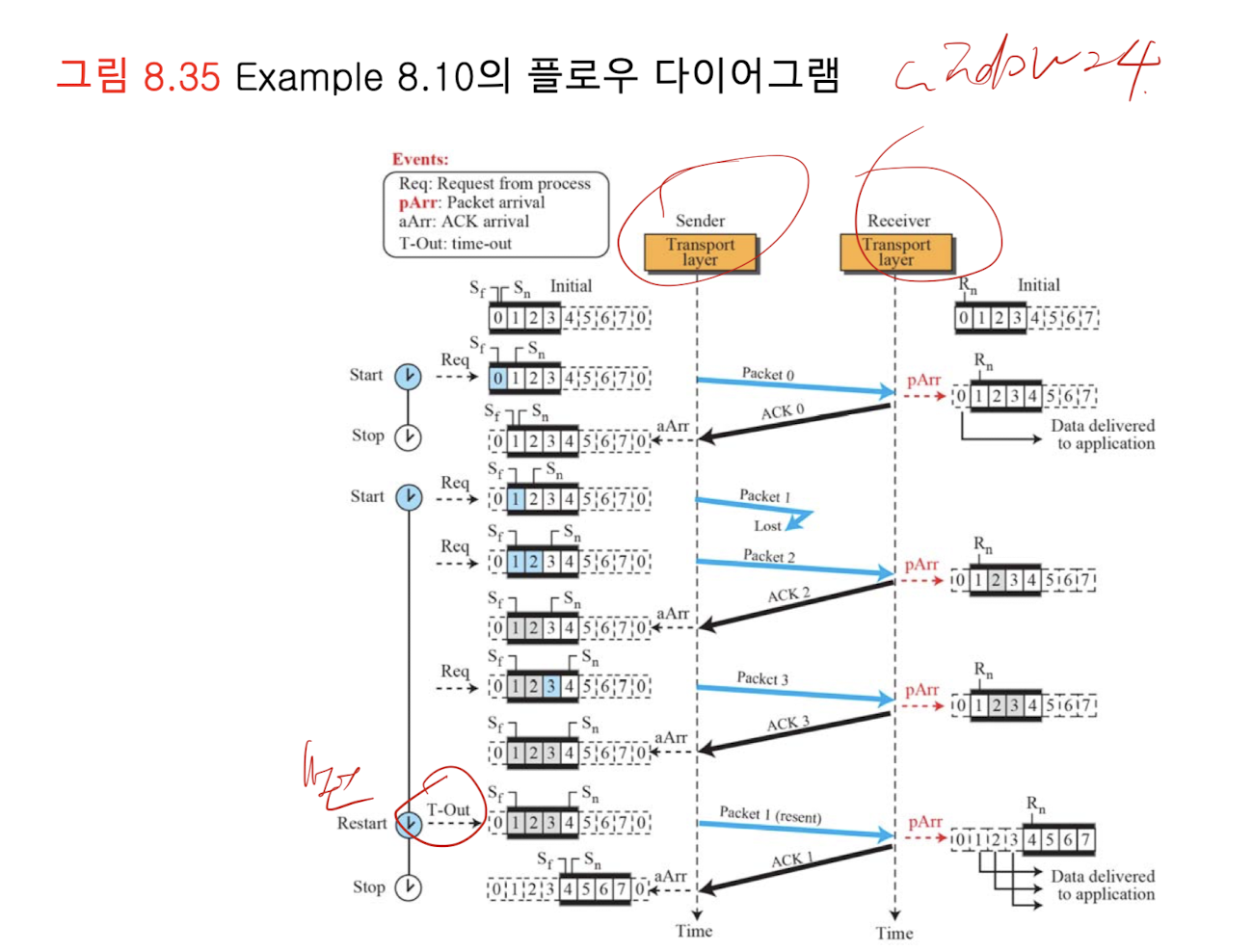 그림 8.29(다음페이지)는 Go-Back-N의 예를 보여준다.