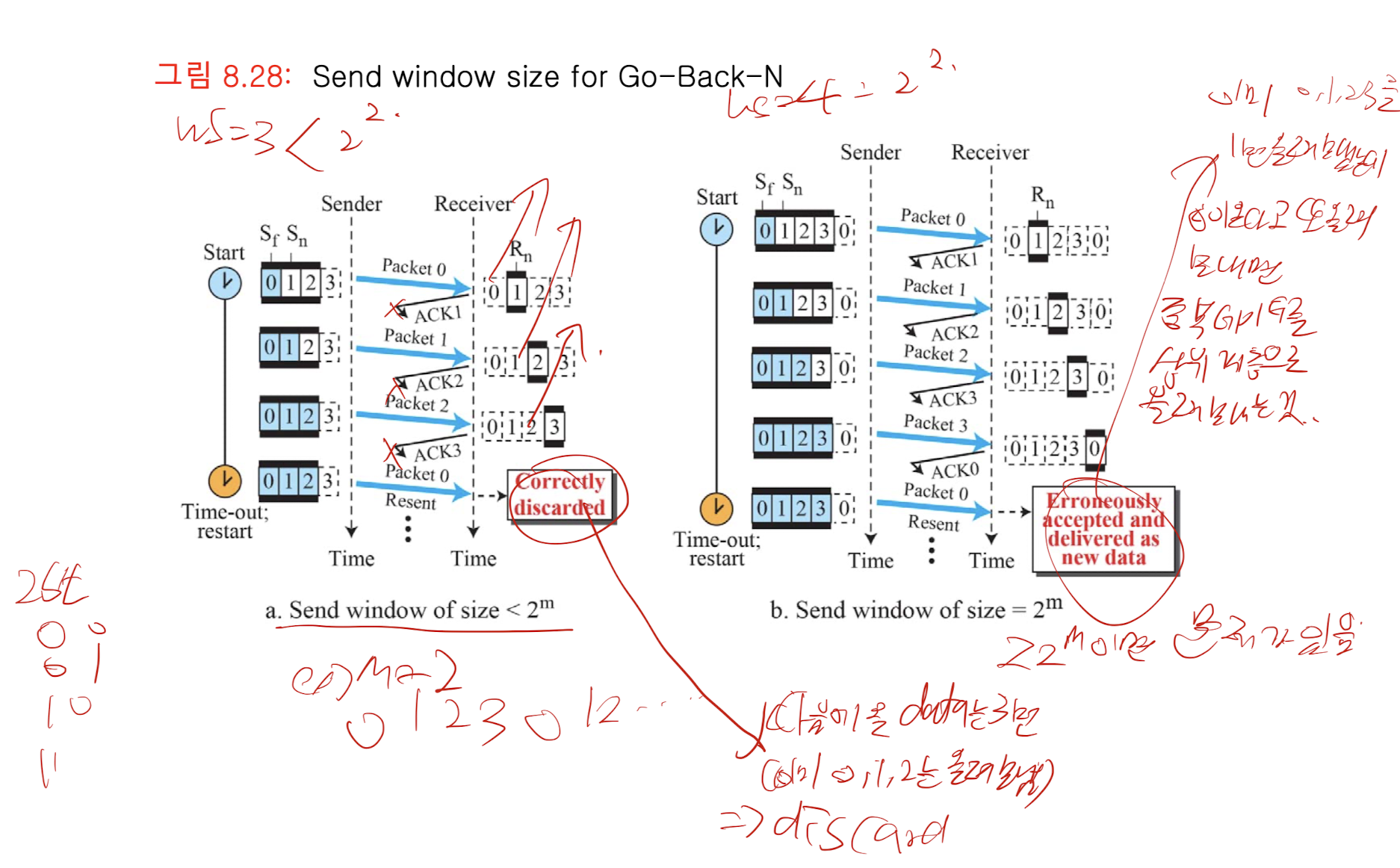 !! Go-Back-N의 경우 Send window 크기가 2^m보다 작아야 한다