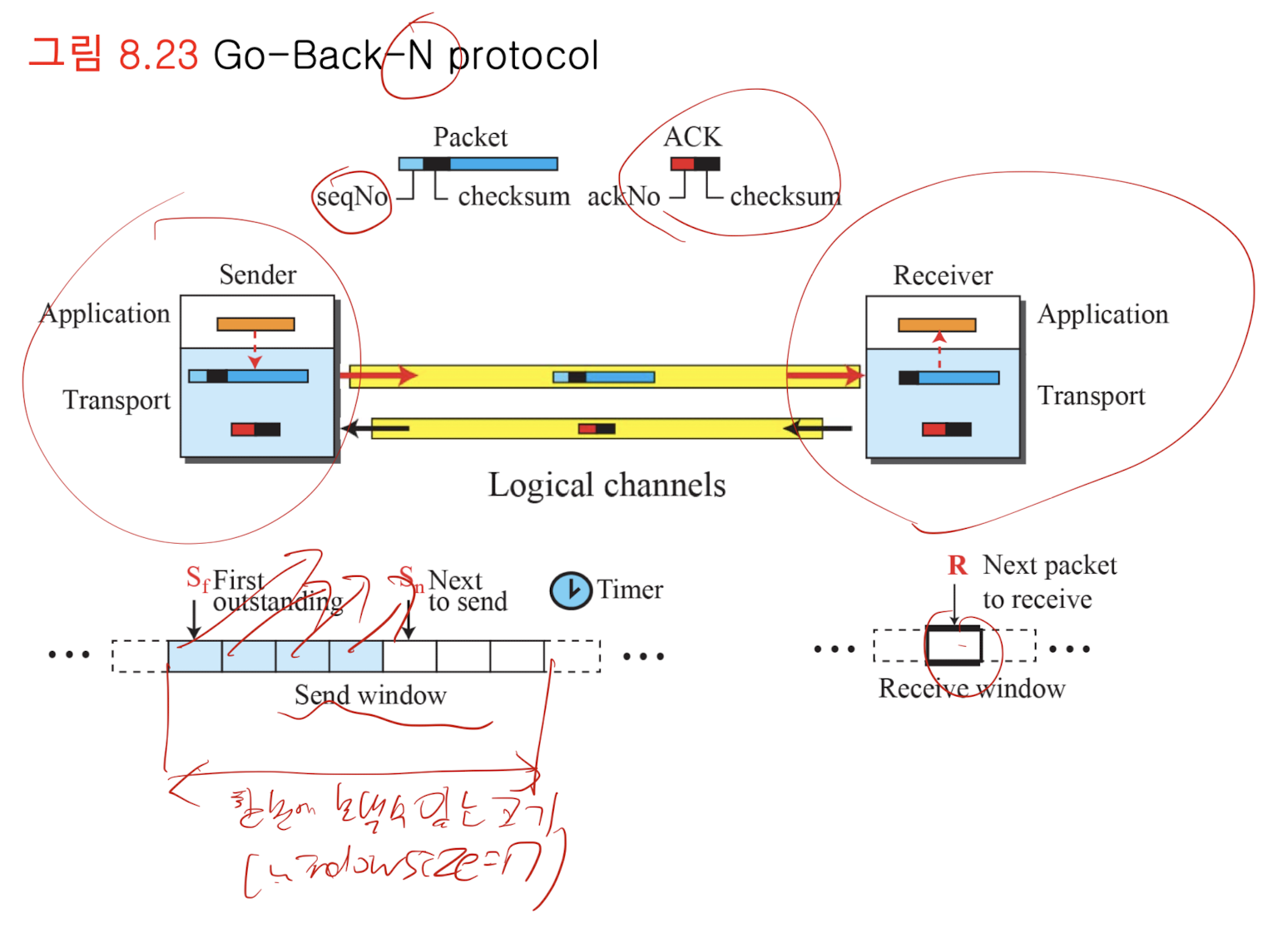 SR 프로토콜을 살펴보기 앞어서 Go-Back-N 프로토콜 구조를 다시 봐보자