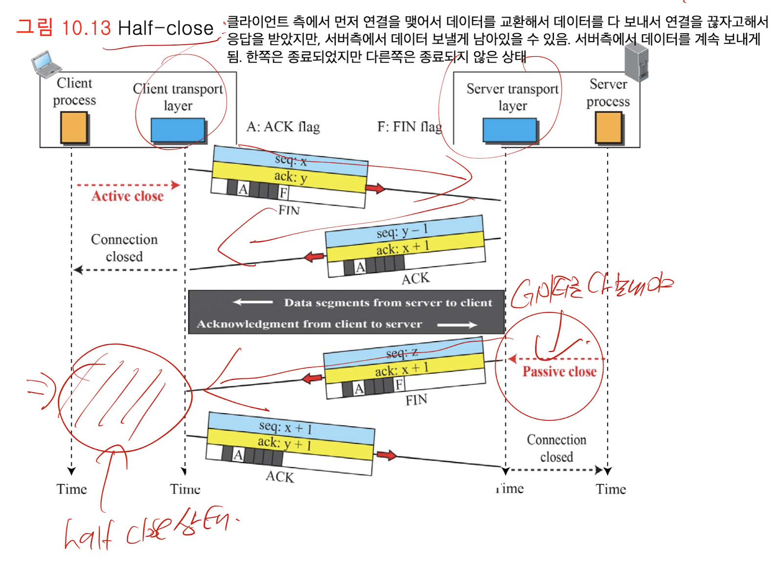 - 부연설명 하자면, TCP는 IP를 통해서 통신하는데, IP는 Connectin less임(고정된 경로가 아님). 이걸 가지고 Connection less가 아니냐고 물어본다면, 연결형이 맞다. 가상적인 채널을 통해 흐름, 오류제어를 하고, 신뢰성 있게 전달하기 때문