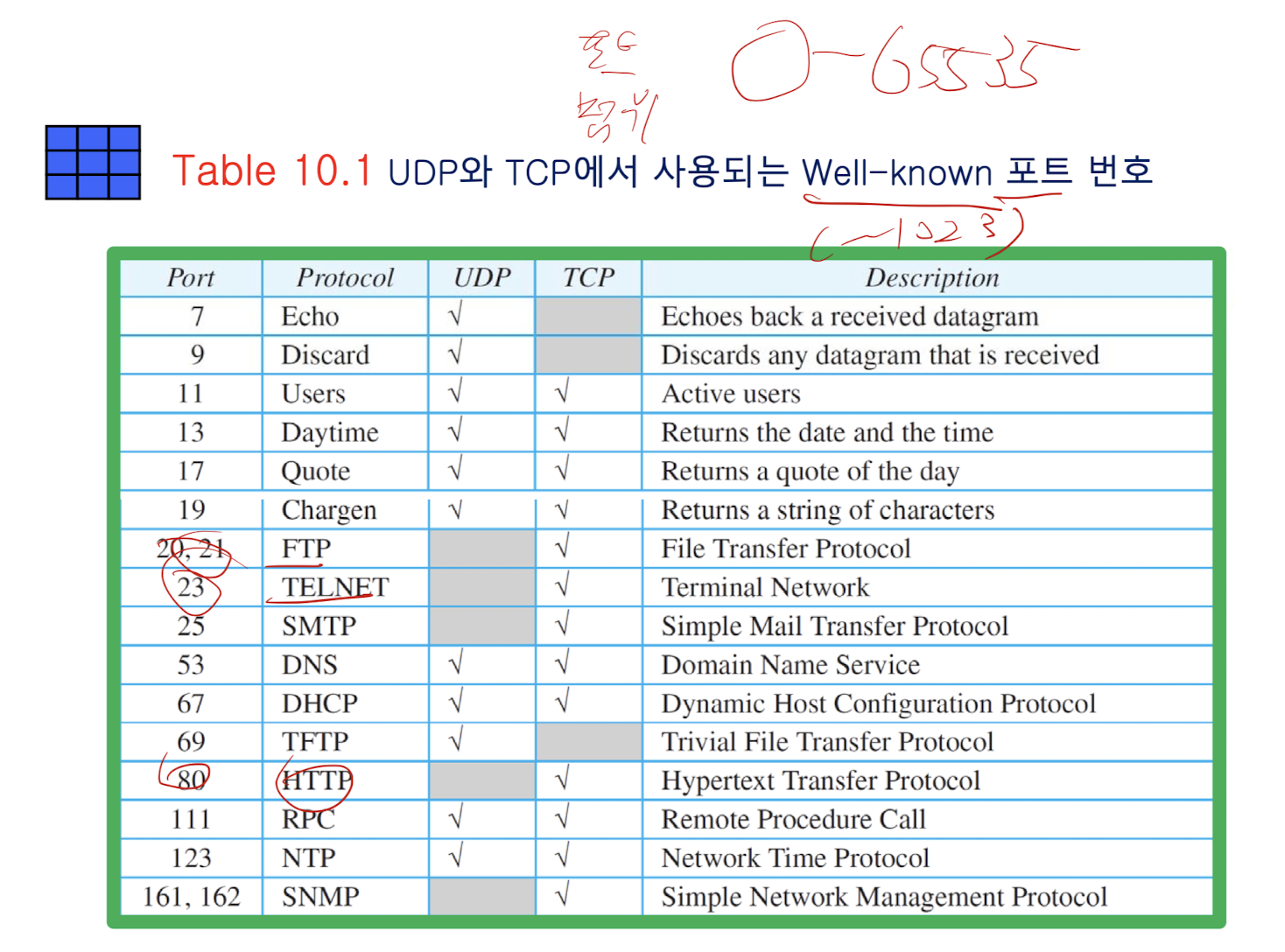 0~1023은 잘 알려진 포트로, 사용하지 않는 것이 좋음