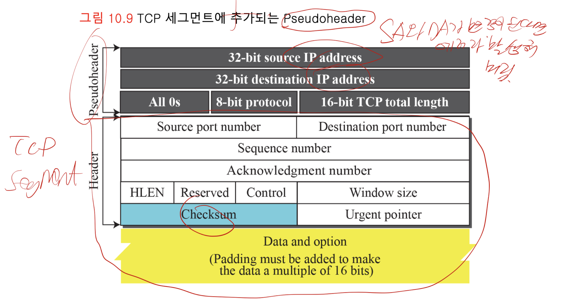 - Pseudoholder : IP 헤더의 부분