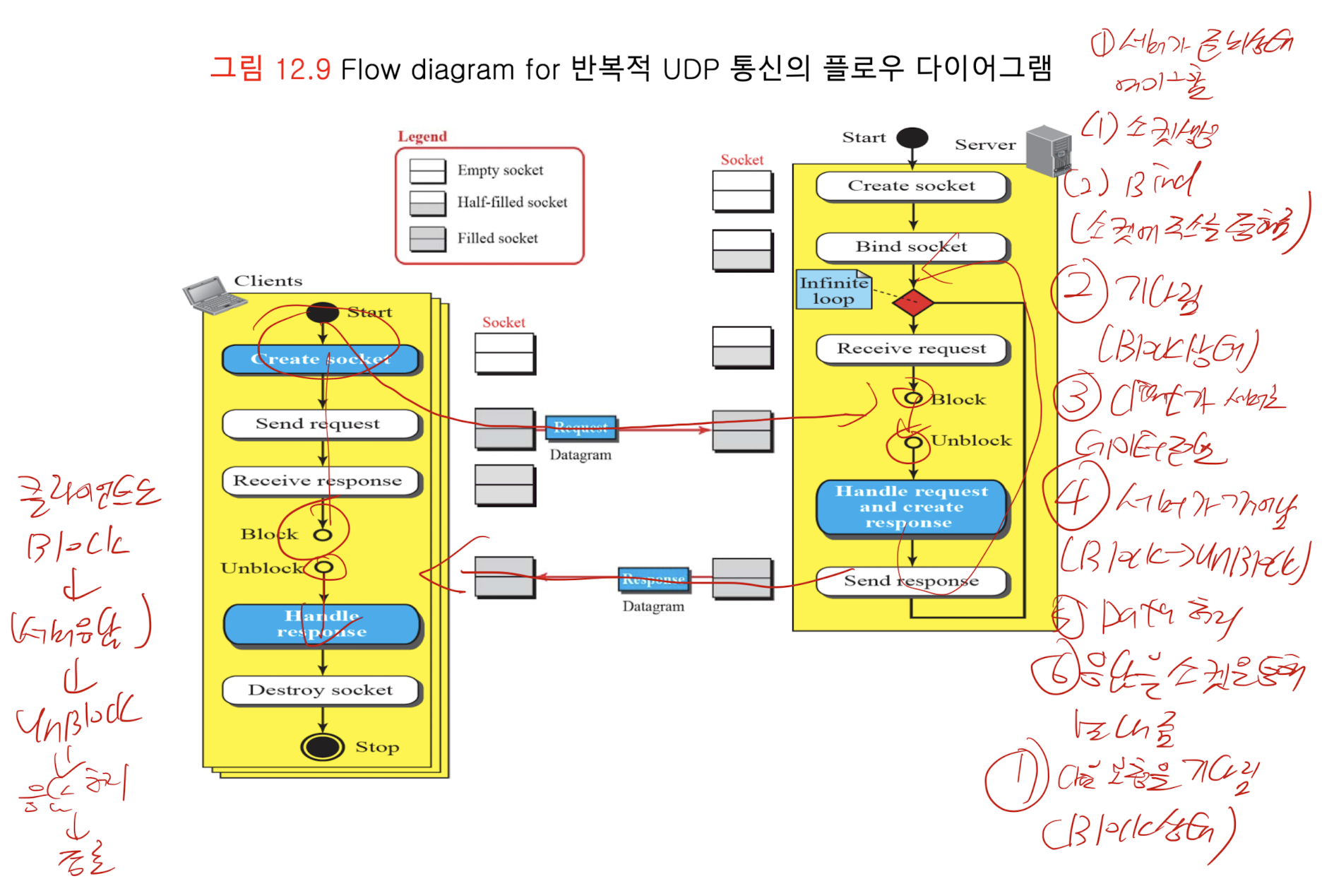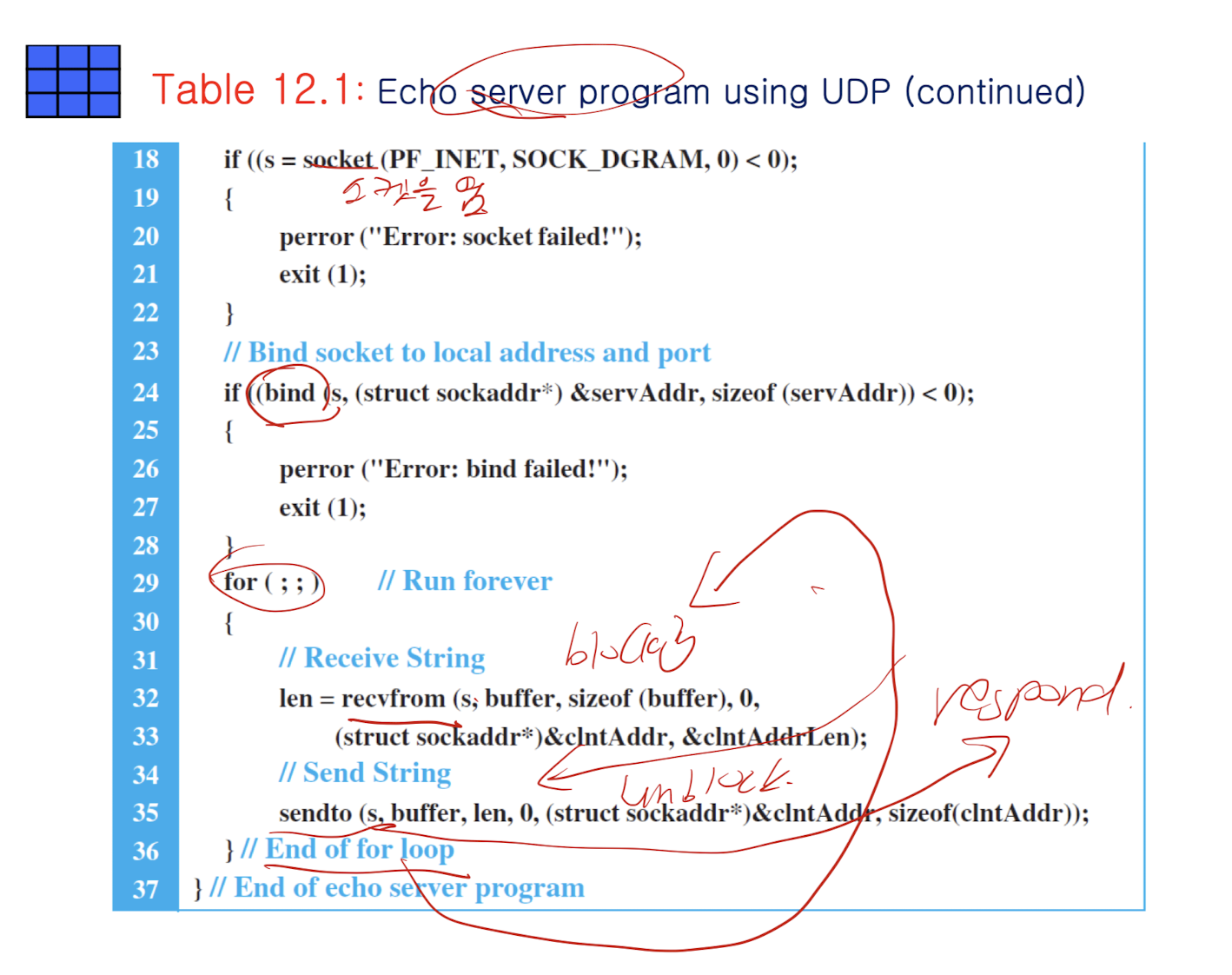 - Recvfrom()을 호출하면 데이터가 올 때까지 블록(block)됨