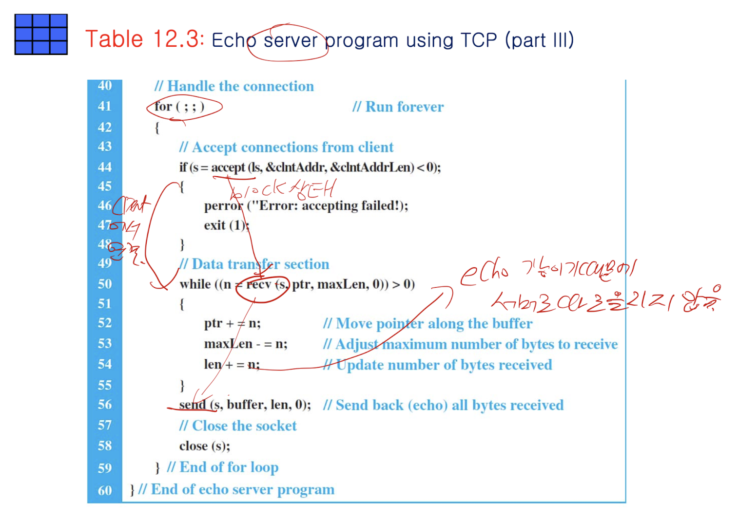 - Accept()를 호출하면, 연결을 기다림 (block)