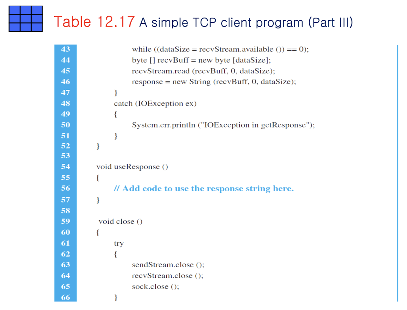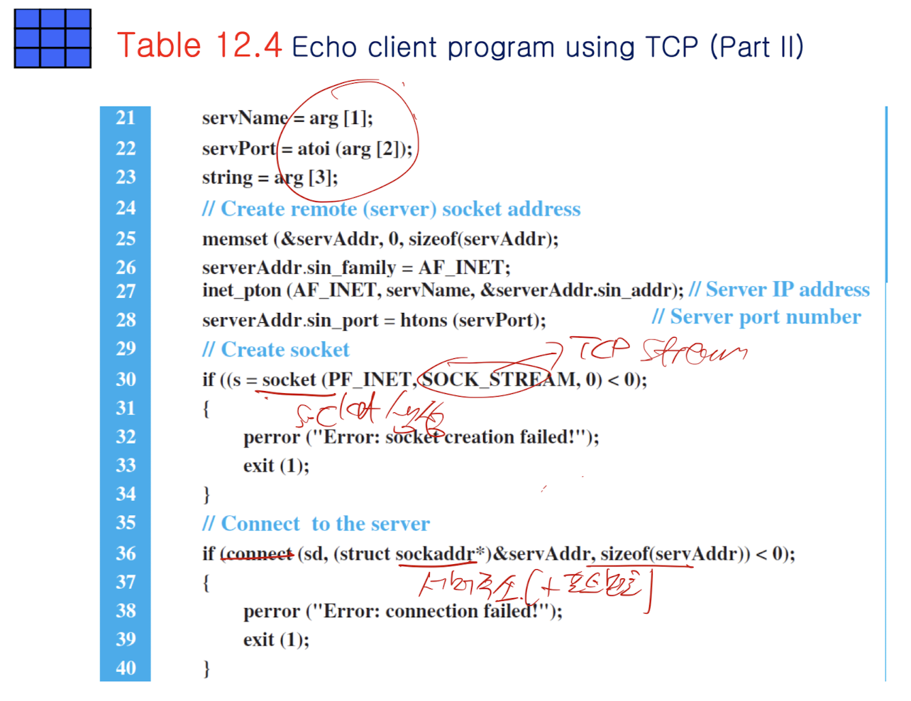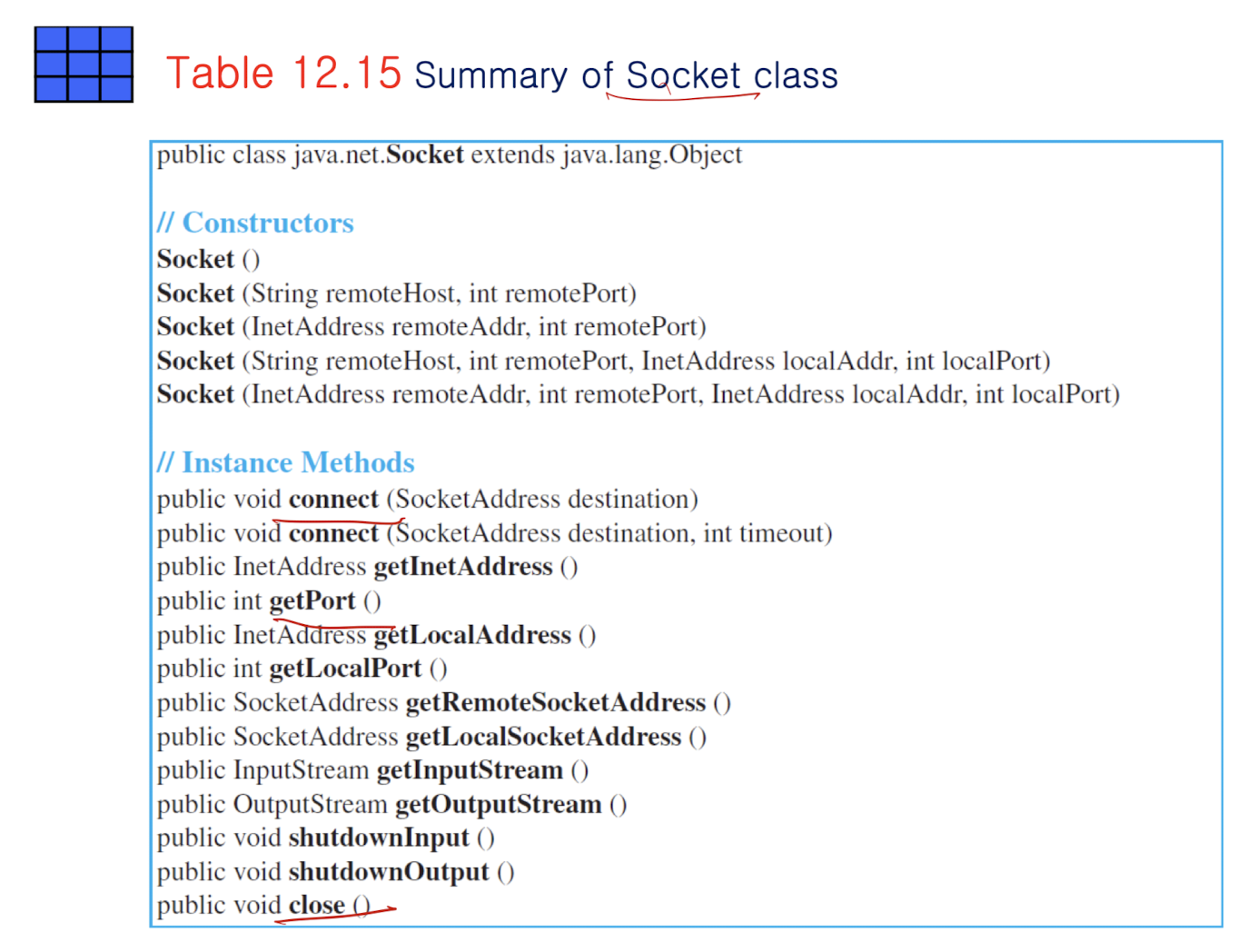 - Connect()로 지정된 서버로 연결 설정 (block)
