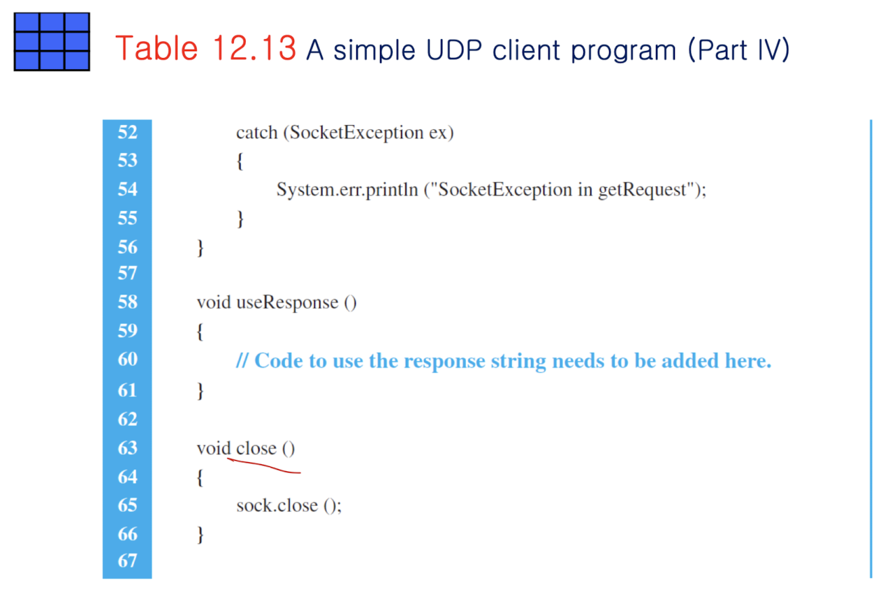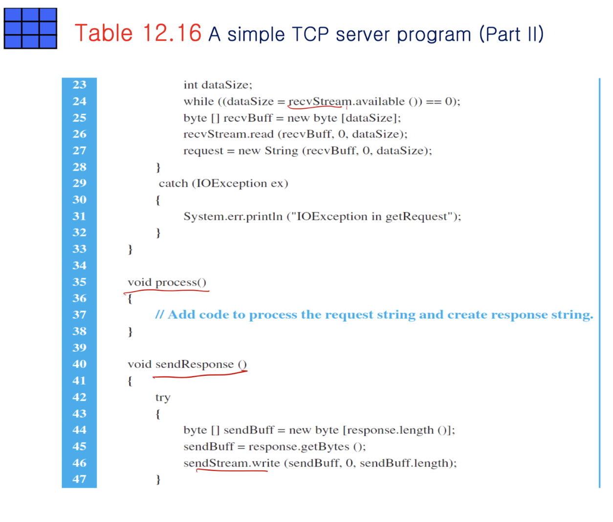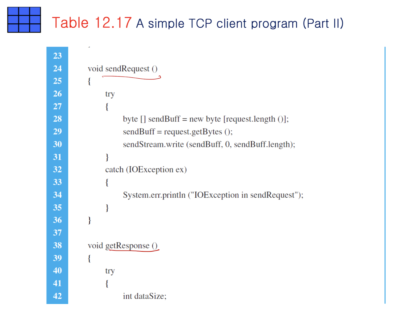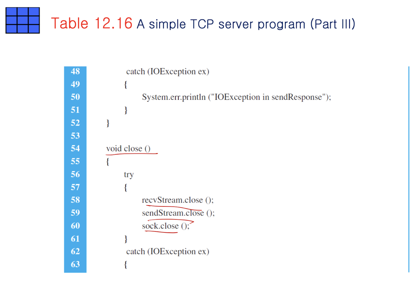 - Connect()로 지정된 서버로 연결 설정 (block)