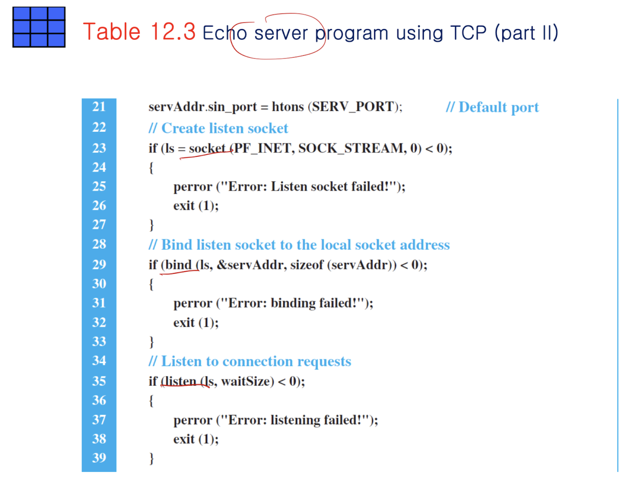- Listen()으로 클라이언트로부터의 연결을 기다리는 준비를 함