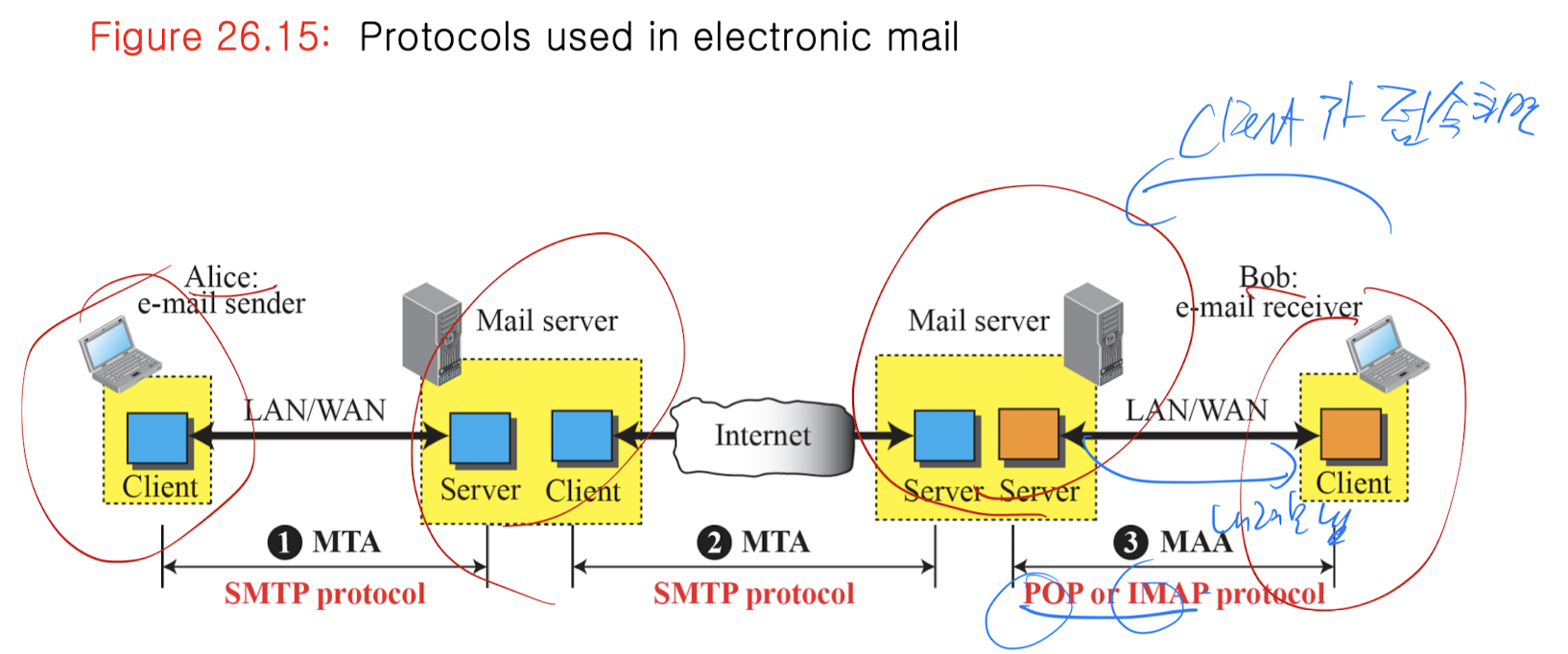 - (SMTP를 주로 사용하고, POP와 IMAP은 나중에 추가된 프로토콜)