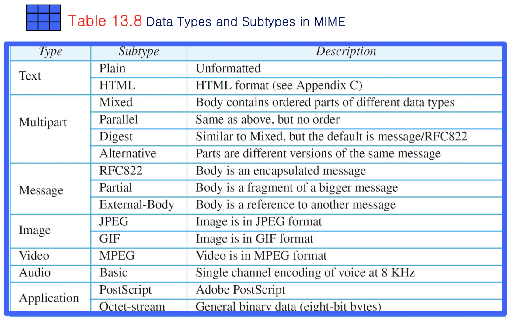 - MIME(Multipurpose Internet Mail Extensions) : 컨텐츠 형식
