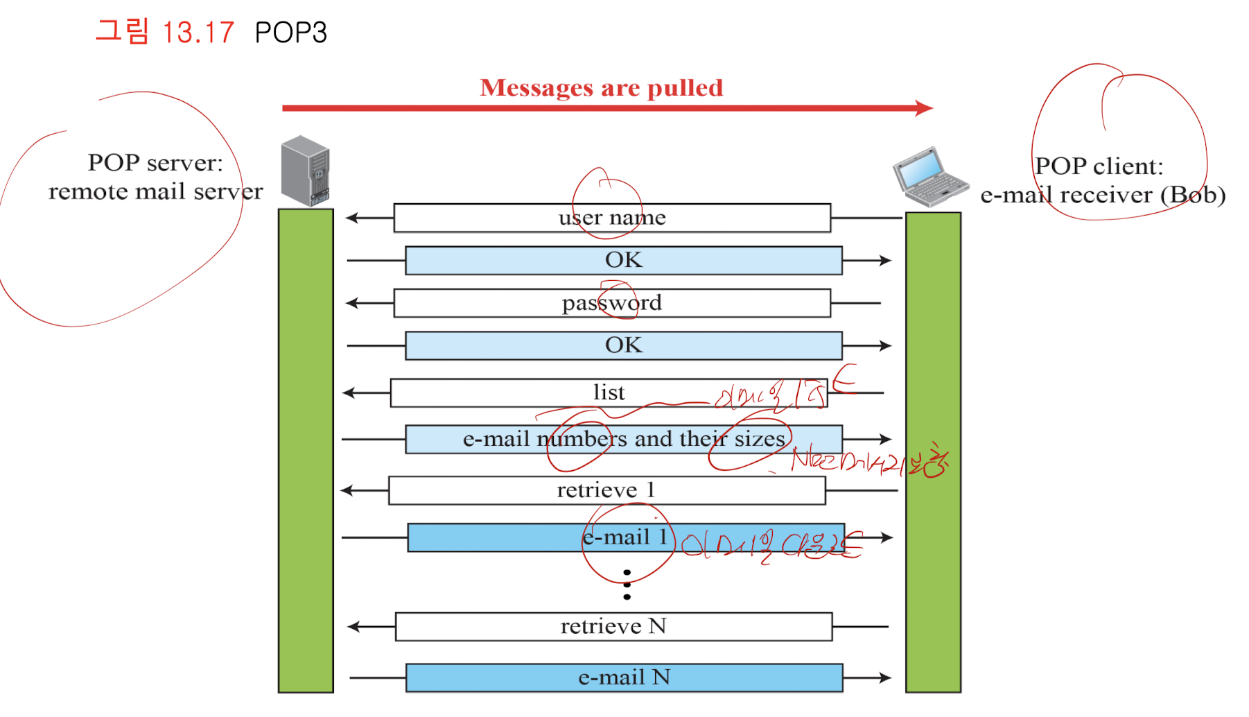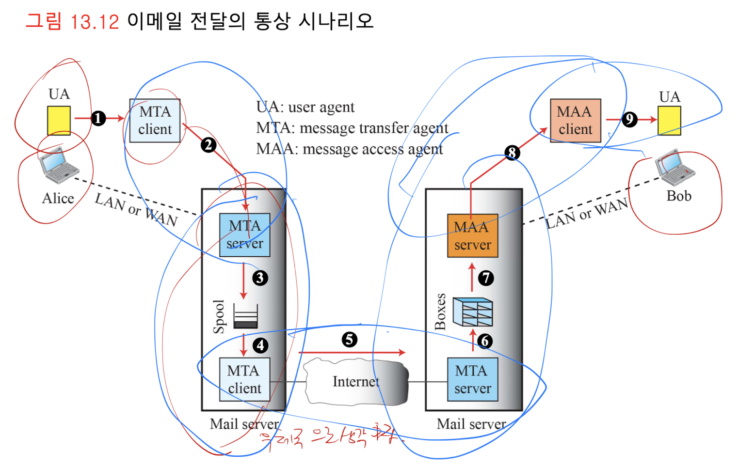그림 13.16은 3개의 메일 전달 단계를 설명