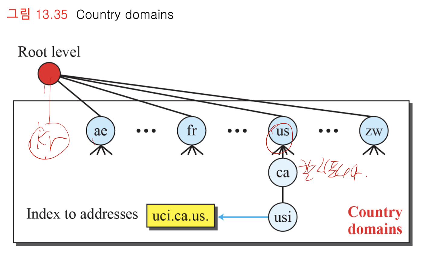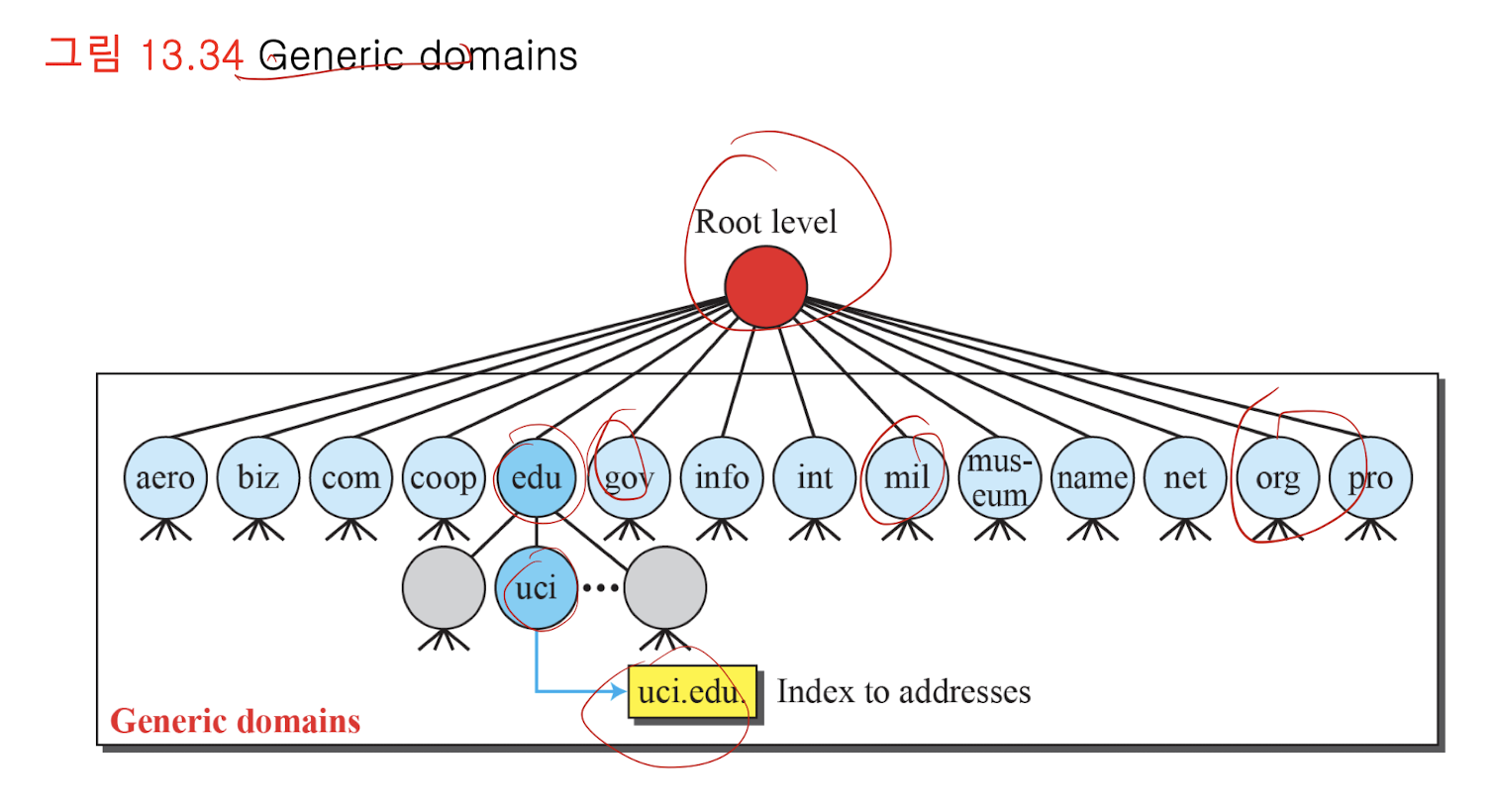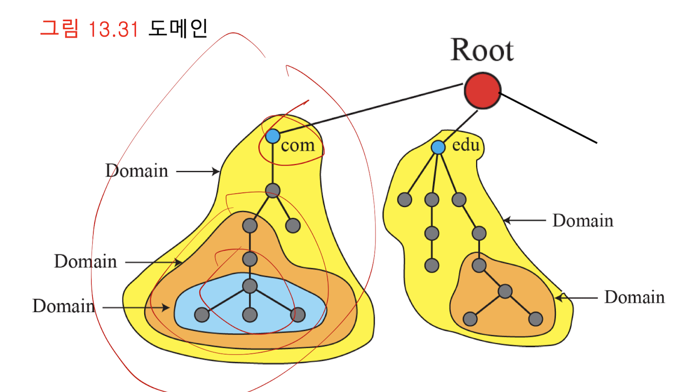 - 인터넷에서 도메인 네임 스페이스 (tree)는 3개의 섹션으로 구성