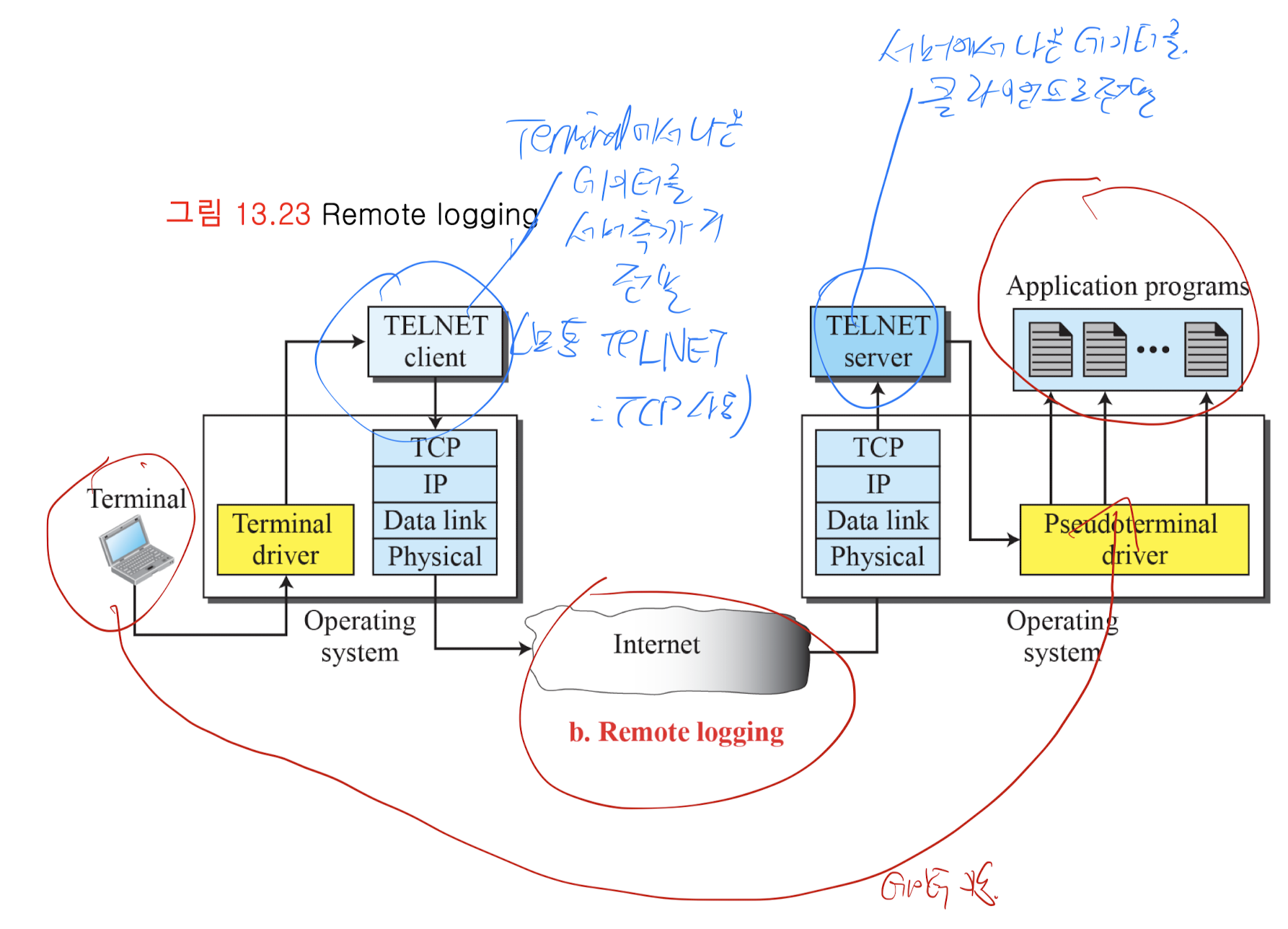 - TELNET 클라이언트 처리: TELNET 클라이언트는 데이터를 NVT 캐릭터 형식으로 변환하여 인터넷을 통해 원격 시스템으로 전송합니다.