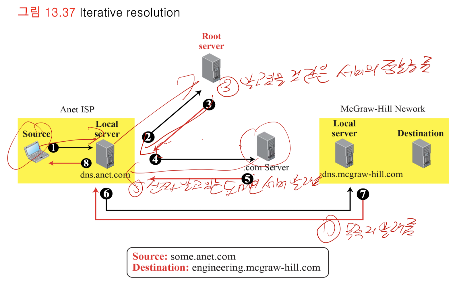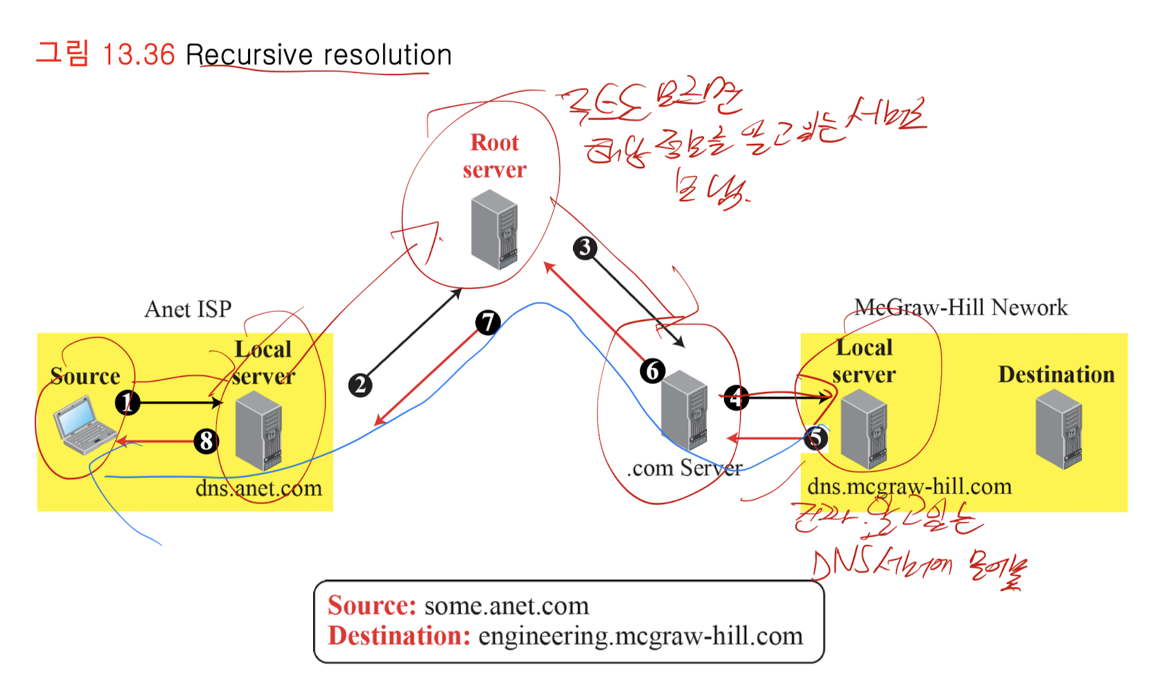- DNS 서버가 정보를 가지고 있으면 주소가 해결되고, 없으면 정보 를 얻기 위해 다른 DNS 서버에 문의