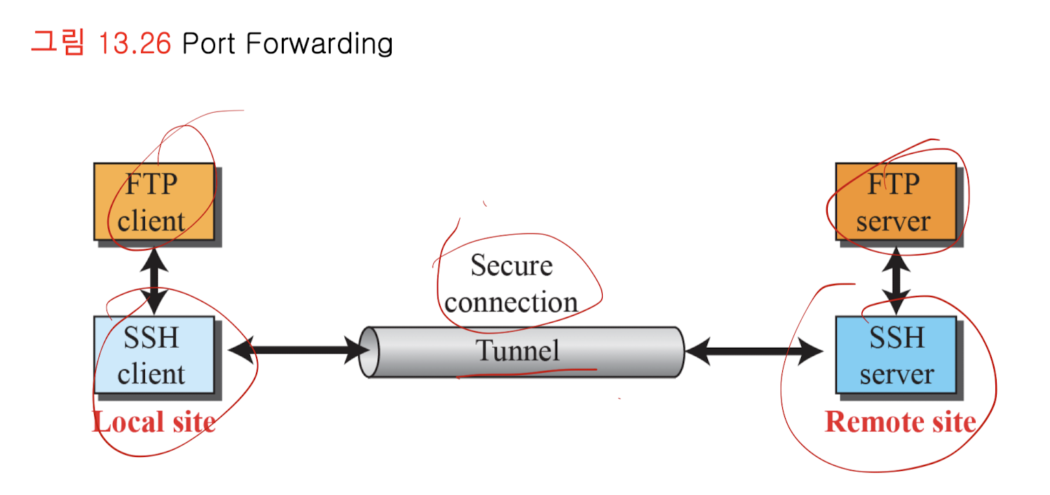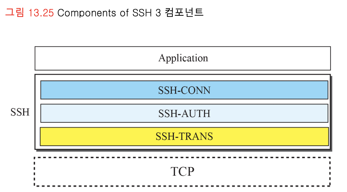 - Secure Shell (SSH)이 현재 리모트 로그인이나 파일전송 등에 사용되는 안전한 응용 프로그램이지만, 원래는 TELNET을 대치하기 위해 고안된 것임(대치하여 암호화 해준다)