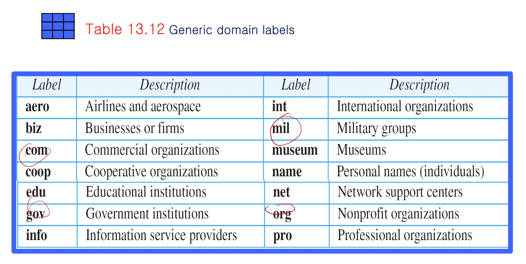 - inverse domains : IP 주소로 이름 찾는 서비스. Deprecated(더 이상 사용X 의미)