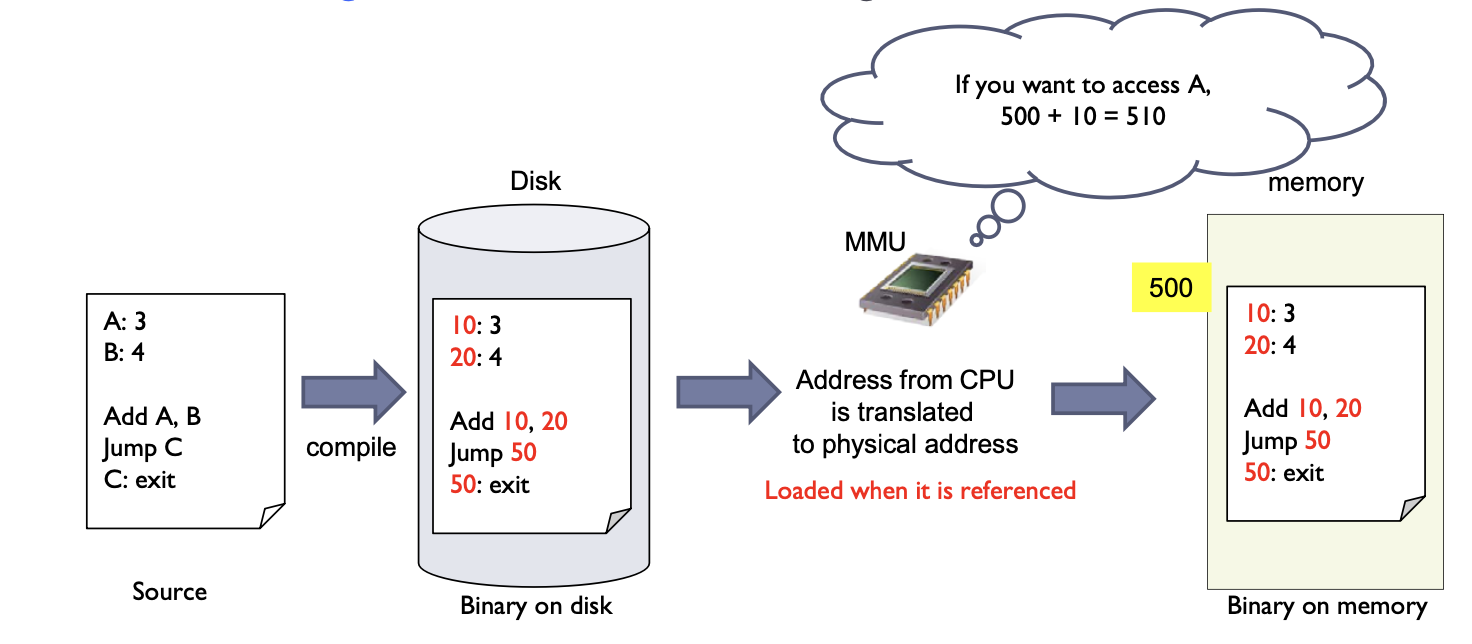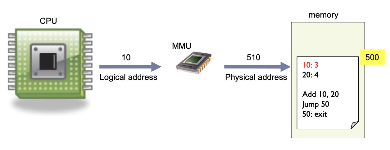 - CPU가 요청한 주소로 접근하기 위해서는 MMU라는 하드웨어의 도움을 통해 address mapping이 일어남