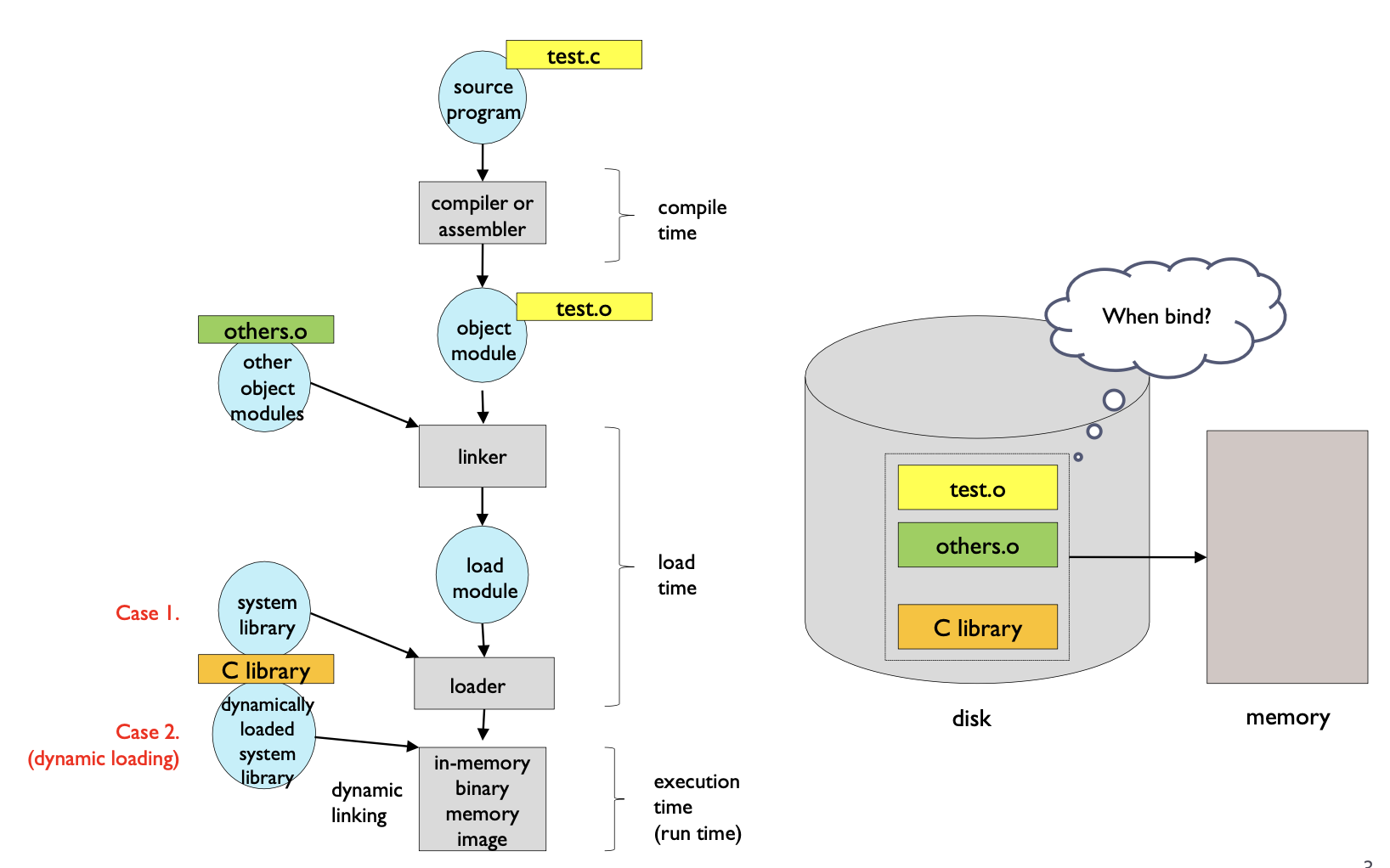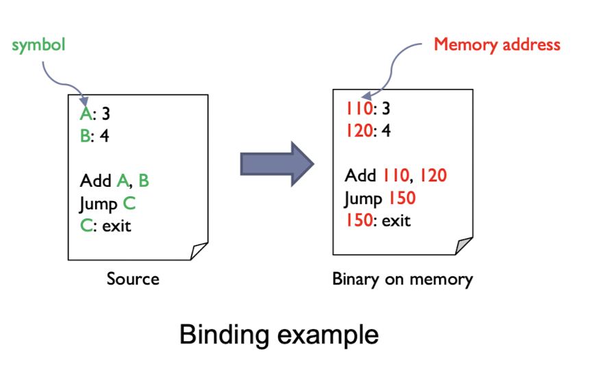 - 프로그램이 메모리에 적재될 때, binding이 일어남
