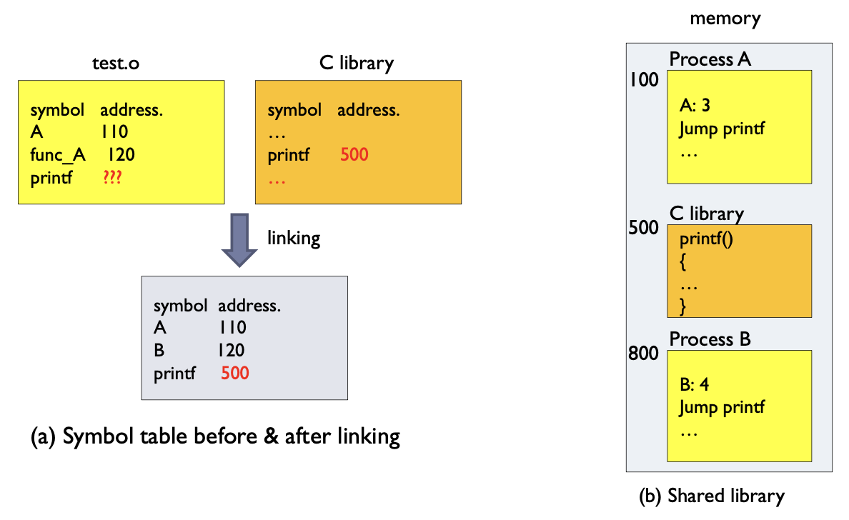 - library를 필요로 하는 모든 프로세스에 대해 메모리에 하나의 복사본만 있어도 충분하다