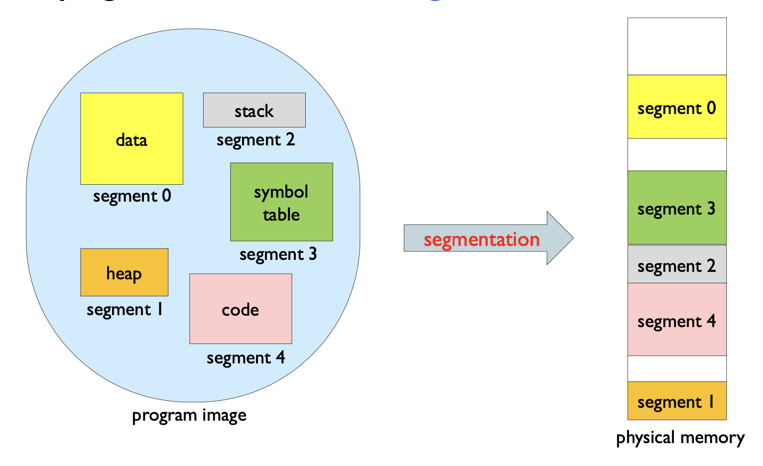 즉, 프로그램을 단순히 바이트들의 배열로 보는 것이 아니라, 세그먼트들의 집합으로 이해하고, 이러한 단위로 메모리를 관리하자는 개념입니다.
