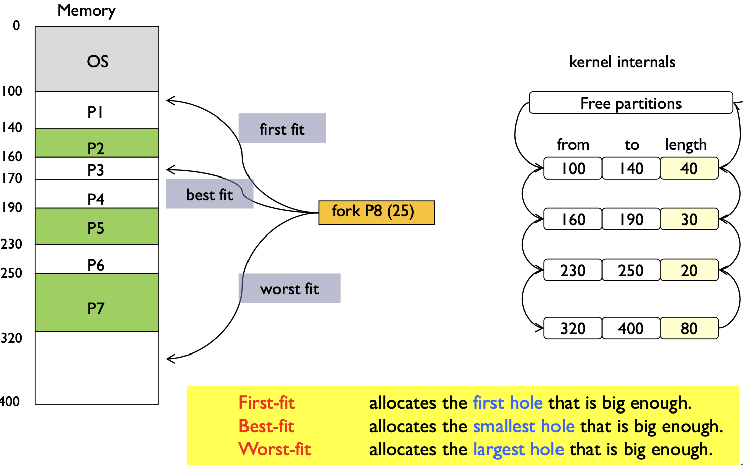- 첫 맞춤(first-fit), 최적 맞춤(best-fit), 최악 맞춤(worst-fit)을 기억하시나요?