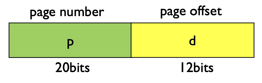 - 논리 주소(4K 페이지 크기의 32비트 주소)가 분할됩니다.
