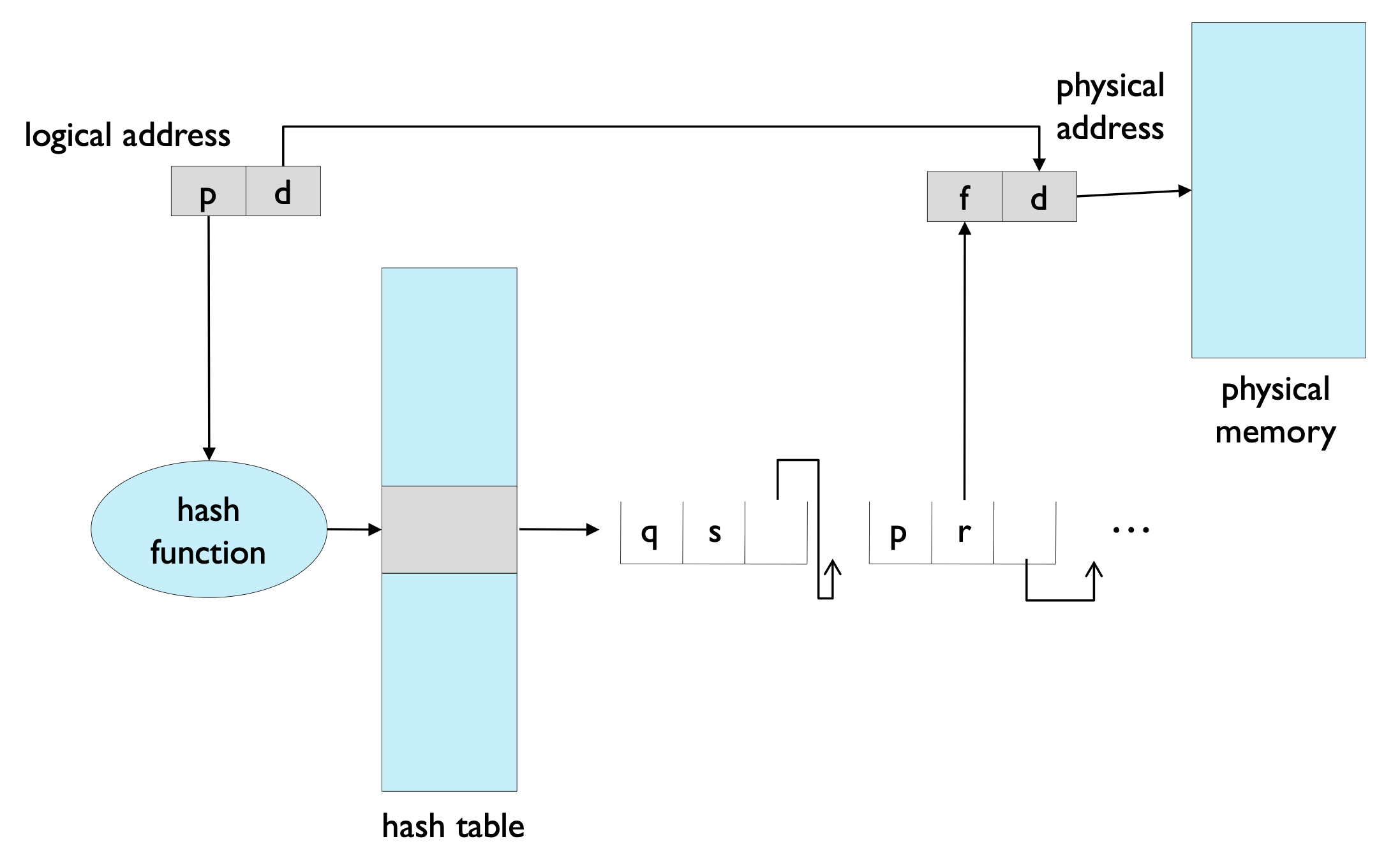 - 논리 페이지 번호(logical page number)가 테이블에 해시된다