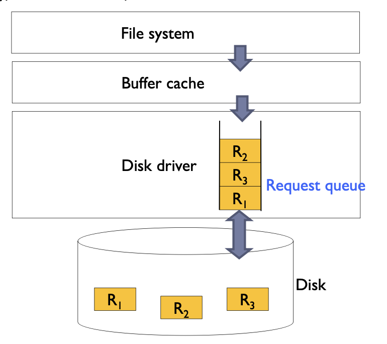 - 요청(Request): 디스크 I/O 스케줄러의 스케줄링 단위
