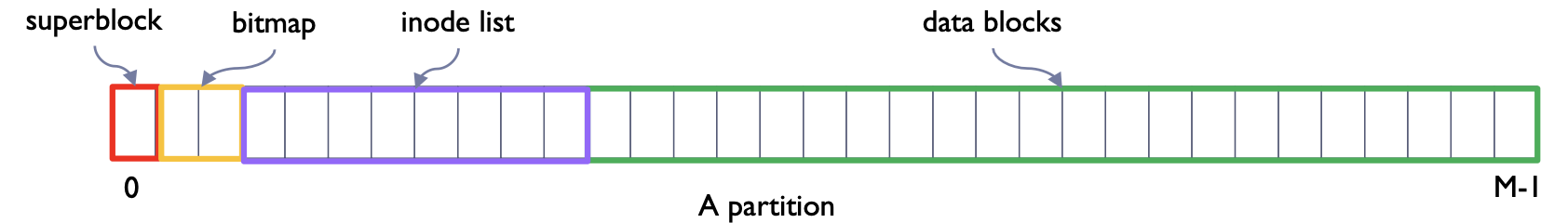 - 운영체제는 초기 파일 시스템 data structures를 저장함.