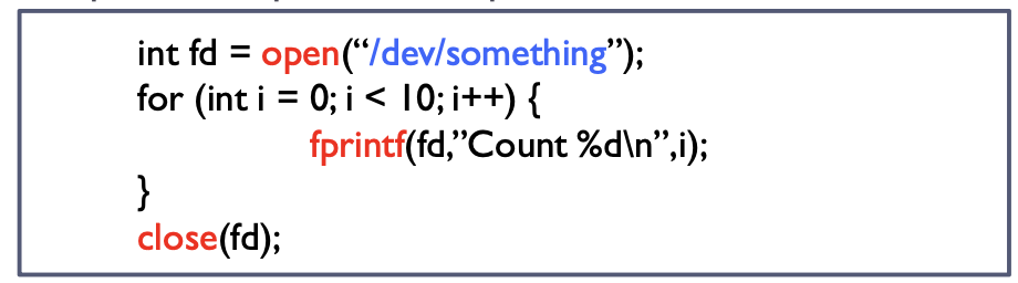 (1) 사용자 프로세스: 시스템 호출로 I/O 요청