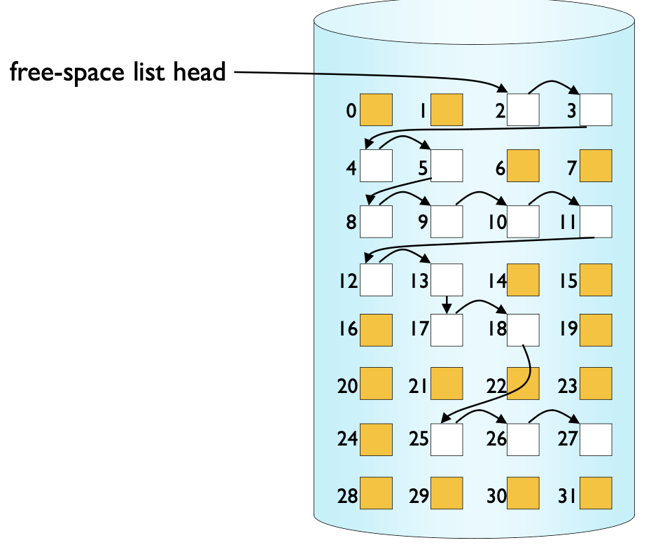 - 마지막 블록은 또 다른 n개의 여유 블록의 주소를 포함함