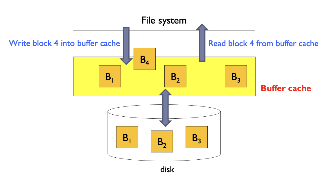- 버퍼 캐시는 곧 다시 사용될 블록을 유지하여 디스크 접근을 줄임.