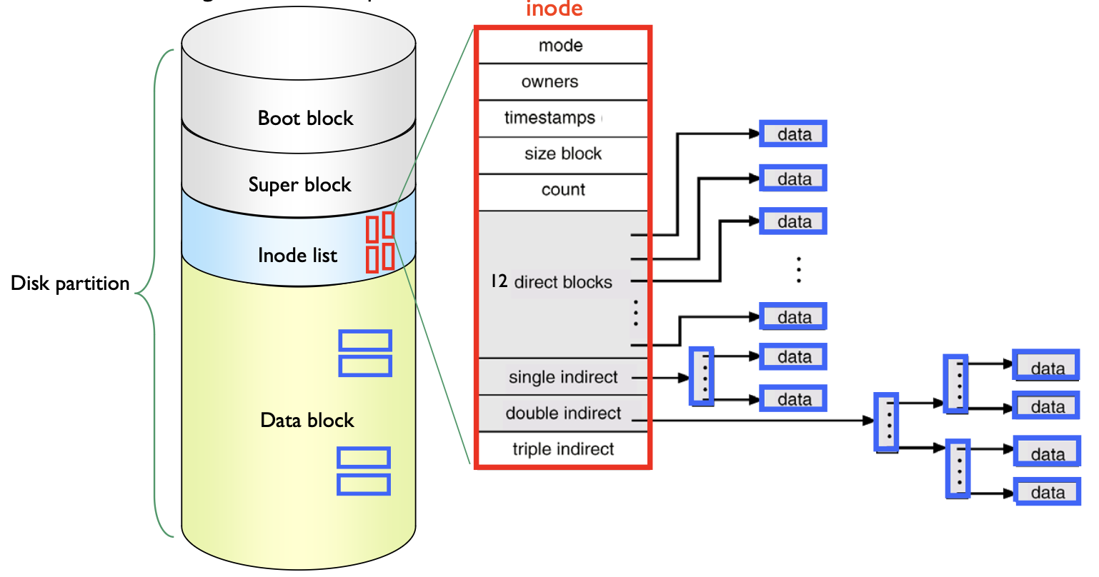 - 파일이 디스크에 저장될 때, 파일의 데이터는 여러 데이터 블록에 저장됩니다.