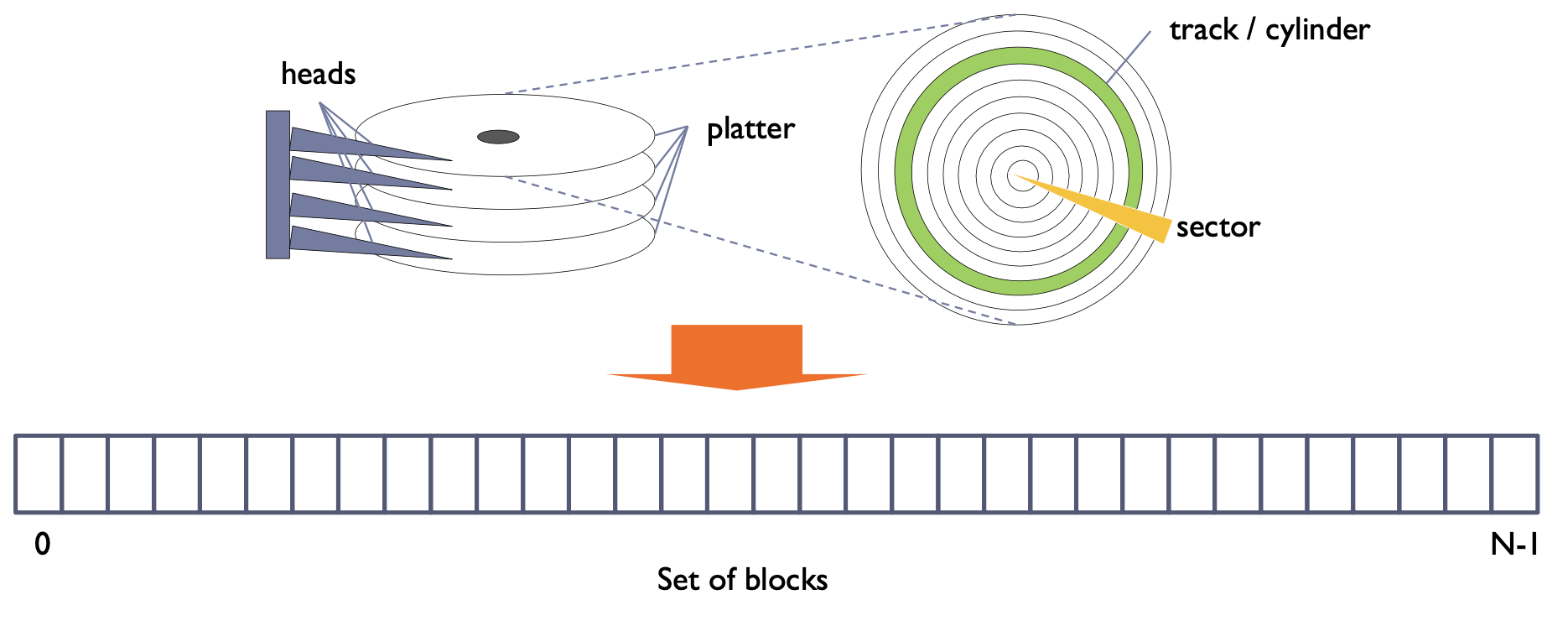 - 파일 시스템은 저장 장치를 블록의 시퀀스로 간주