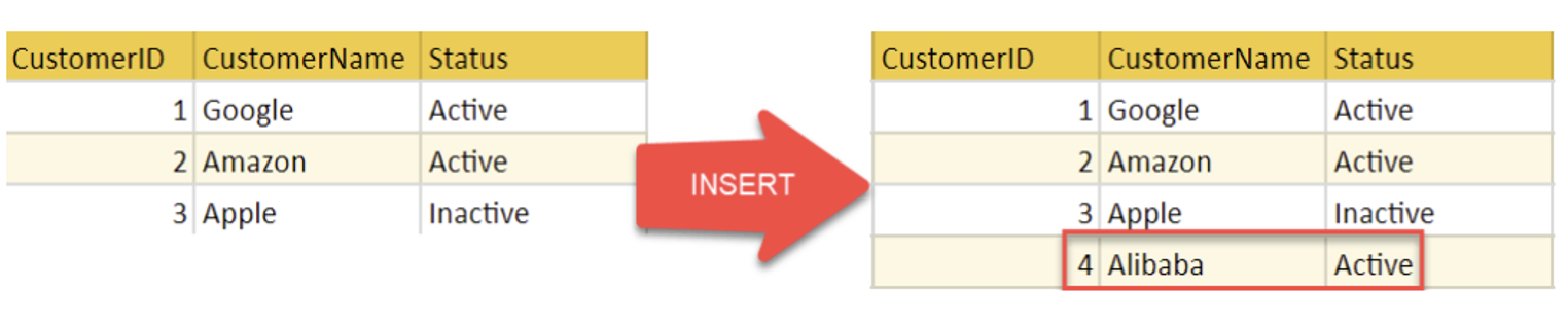 - 새로운 튜플에 대한 속성 값을 제공하여 relation에 삽입됩니다.