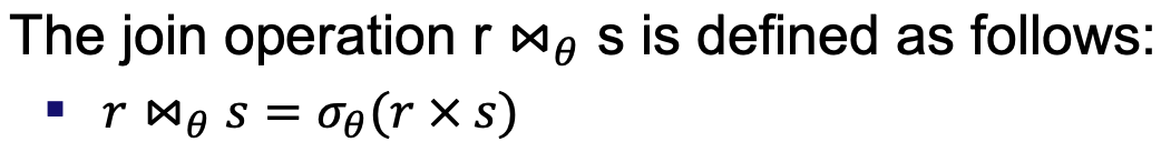- "theta"를 스키마 R과 S의 속성에 대한 조건으로 설정