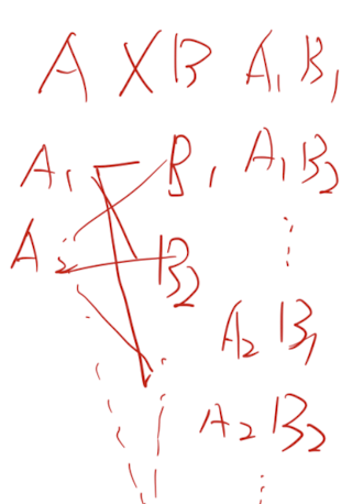 - 카테시안 곱 (Cartesian product): ×