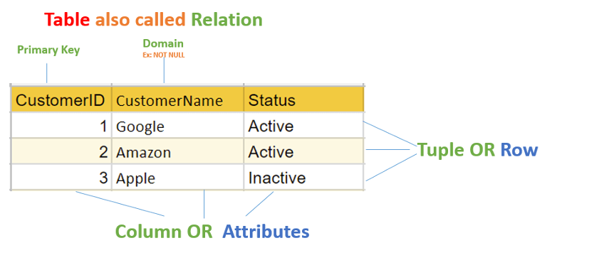 - 튜플 (Tuple): 테이블의 단일 행으로, 해당 relation의 단일 record를 포함하는 것을 튜플이라고 합니다