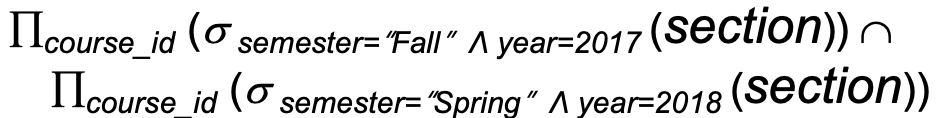 - 예: 2017년 가을 학기와 2018년 봄 학기 모두에 가르친 모든 과목 찾기