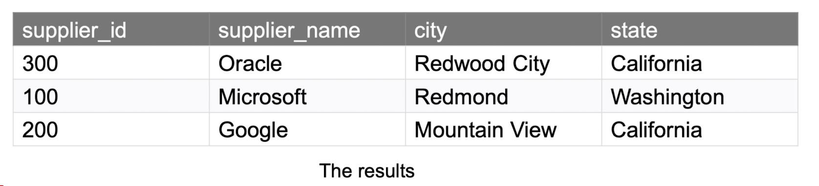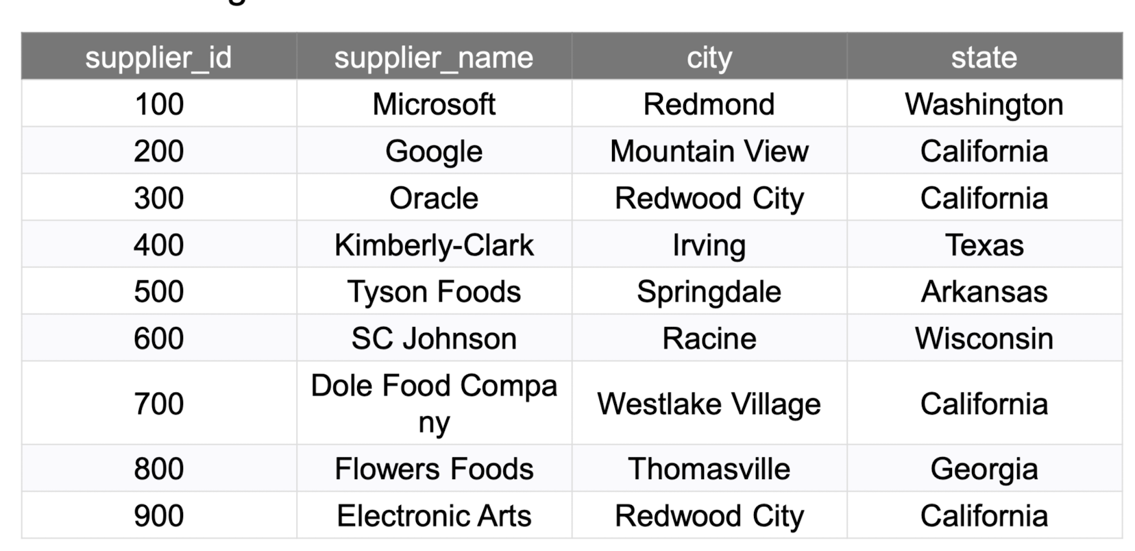 - 이 예시에서, 공급업체(suppliers)라는 테이블이 있습니다.