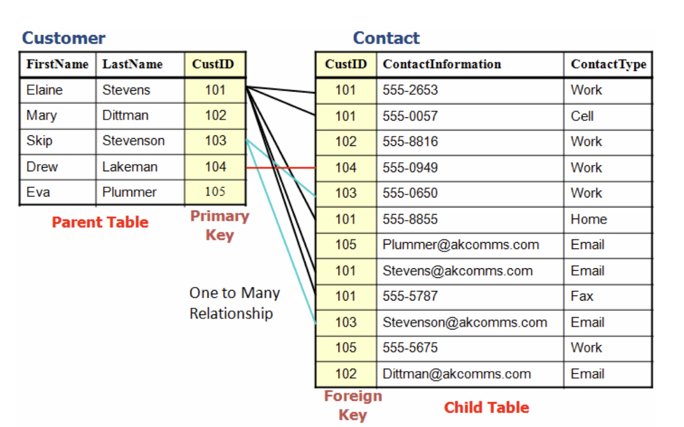 - Primary key는 고유한 값을 포함할 수 있으며 관계형 테이블에서 NULL 값을 가질 수 없습니다.