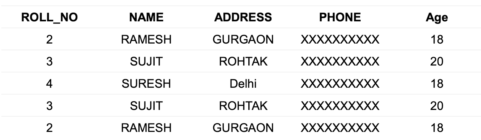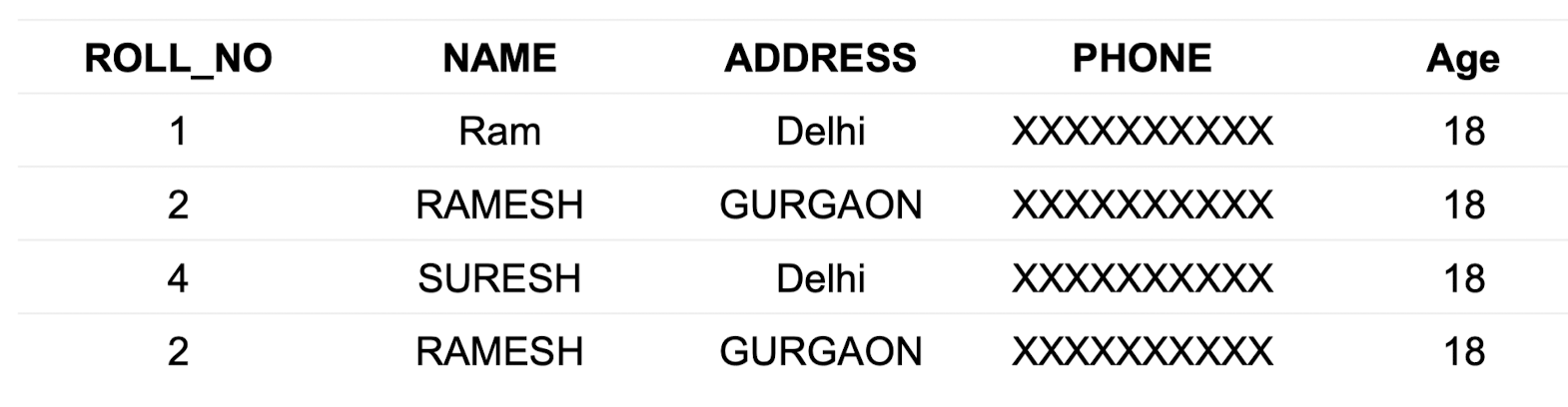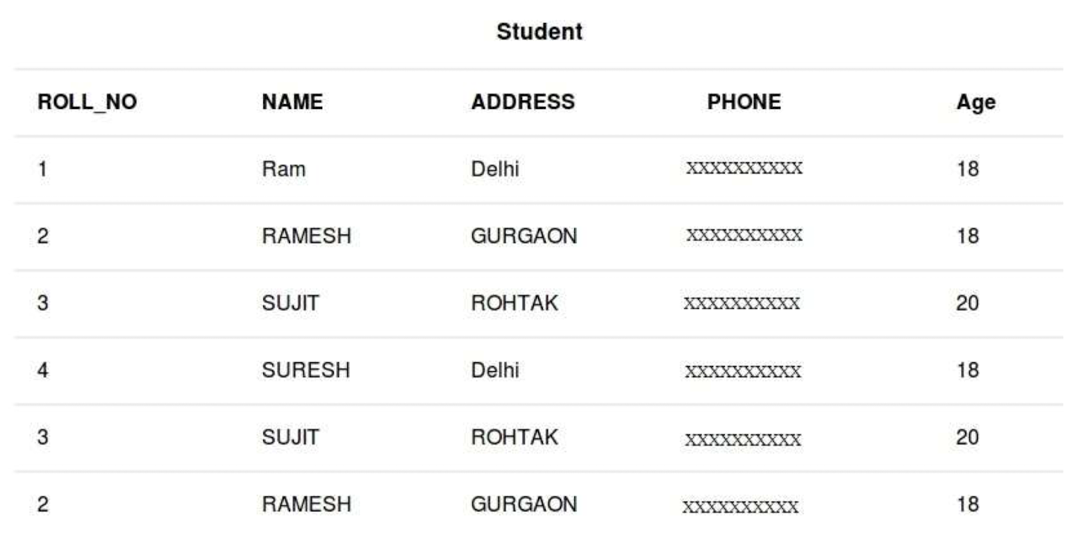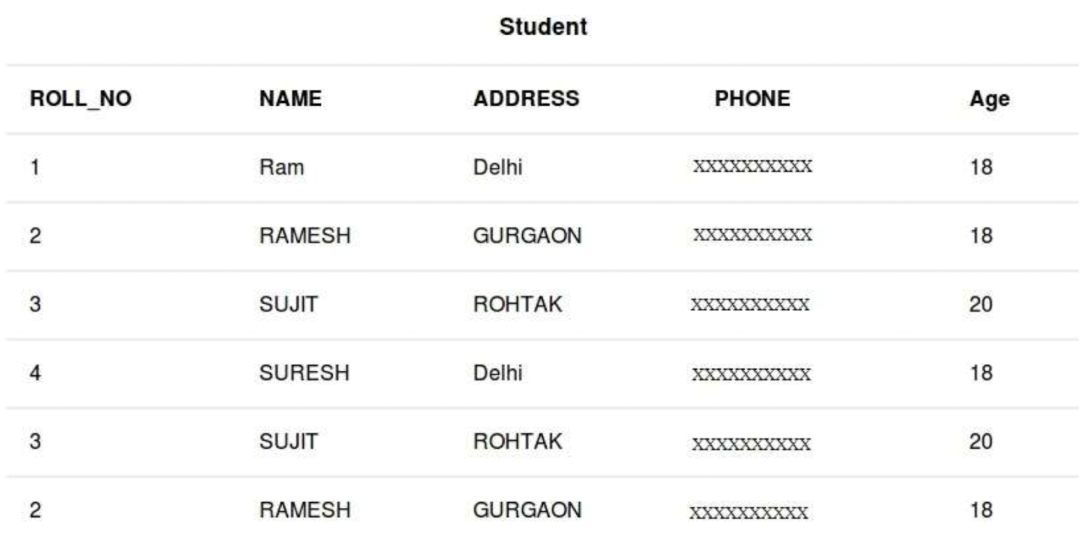 INSERT INTO Student(ROLL_NO, NAME, Age)