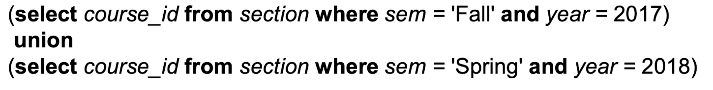 SQL에서의 집합 연산 (SET Operations in SQL)