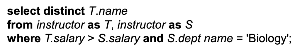- 쿼리의 결과가 relation이기 때문