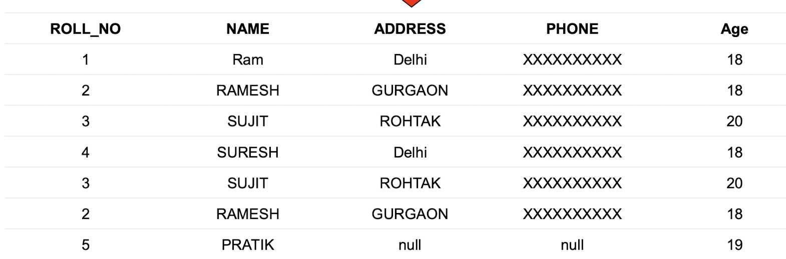 VALUES('5', 'PRATIK', '19');
